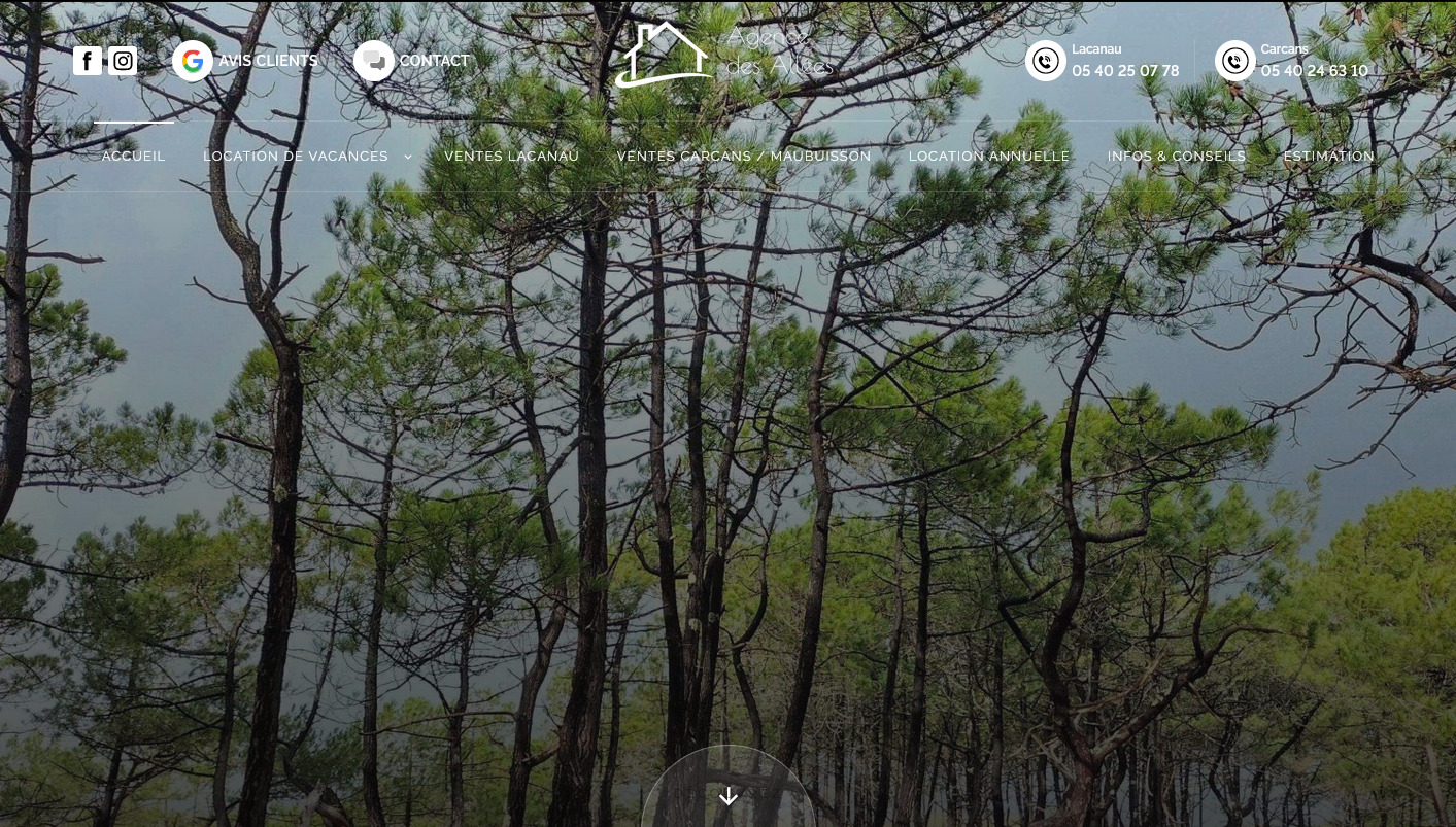 Spécialiste de la location saisonnière sur Lacanau (que ce soient pour des locations à la semaine ou au mois à quelques encablures des plages de la côte Atlantique), l'Agence des Allées propose également une multitude de biens en vente de tout type, puisque vous pourrez retrouver des appartements, des maisons ou des pavillons sur le Cap Ferret, le Médoc et les environs. Entouré par les pins de la forêt des Landes de Gascogne, Lacanau et ses alentours regorgent de biens immobiliers de charme que l'Agence des Allées vous invite à découvrir !