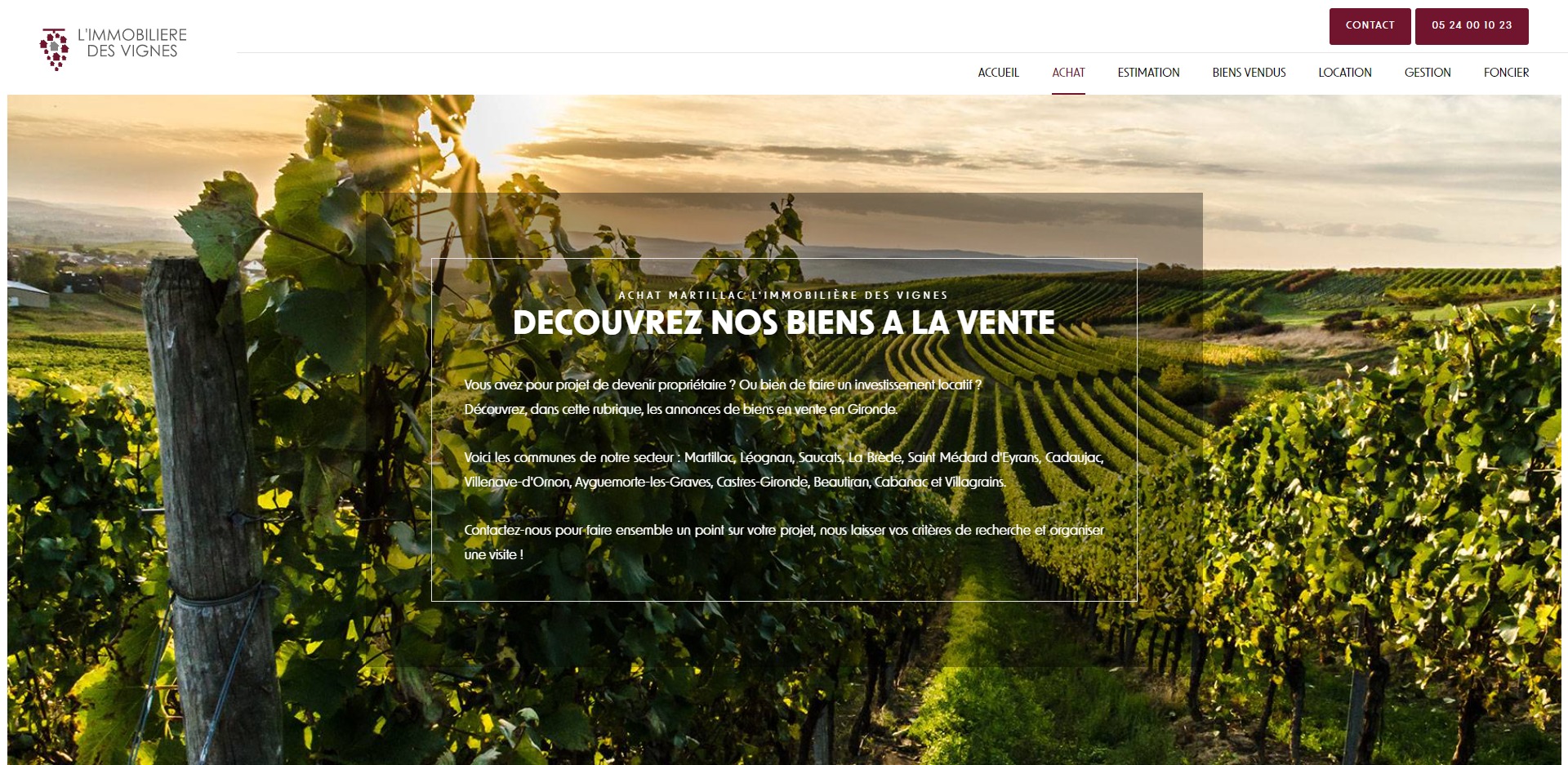 L'Immobilière des vignes souhaitait un site internet rapide, performant et adapté à tous les appareils numériques. Ils ont donc fait appel à notre agence, spécialisée dans le web et plus particulièrement dans la création de site internet, lé référencement naturel.