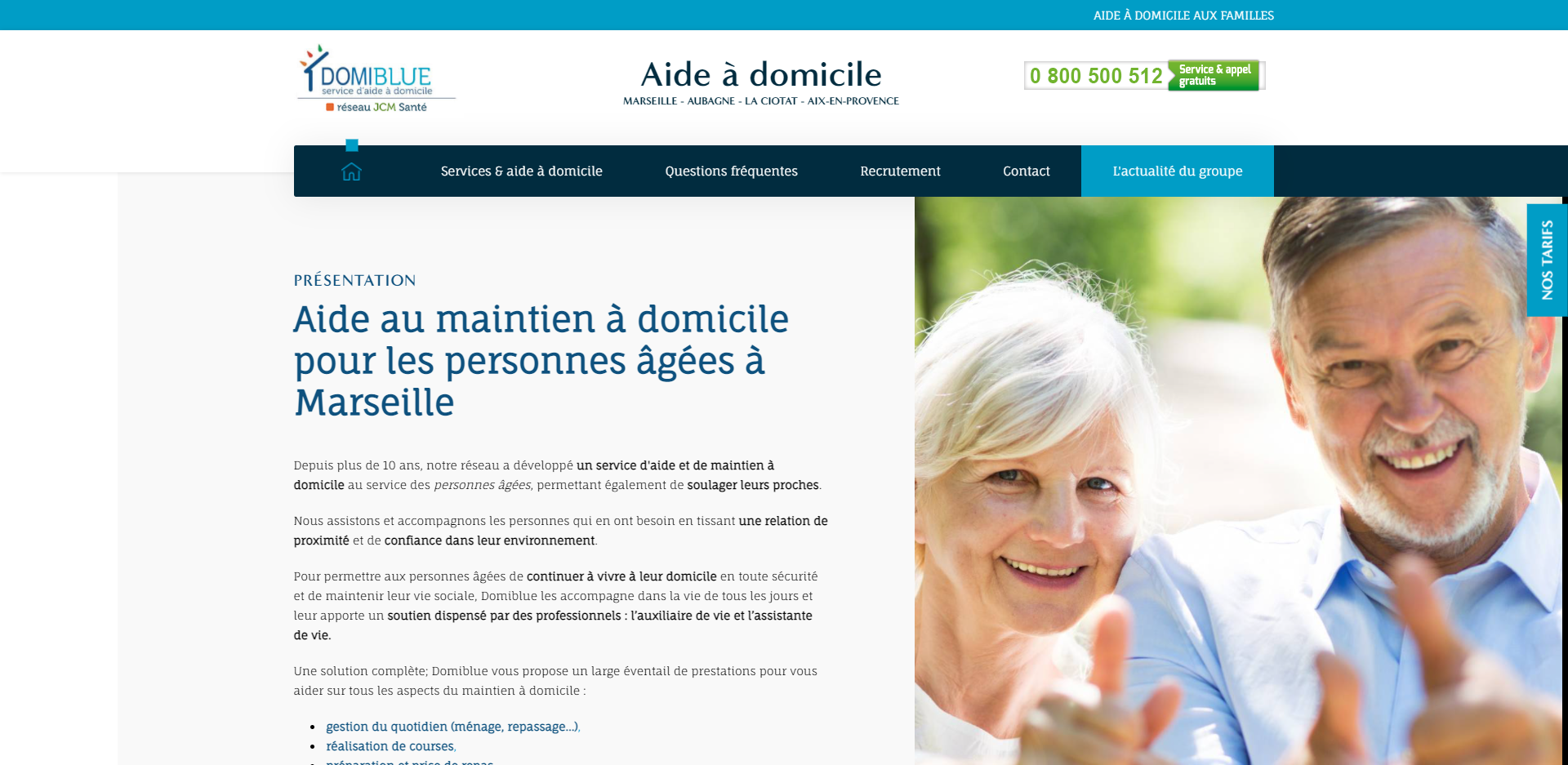 La société Domiblue avait besoin de cette couverture web pour proposer sa solution d’accompagnement et d’assistance à domicile aux personnes âgées à Marseille et les communes voisines. Son équipe intervient aussi pour les personnes qui ont des dépendances de santé ou des pertes partielles ou totales d’autonomie en proposant des services d'aide à domicile sur Marseille. Elle met au service des familles tous ses efforts pour assurer une qualité de service régulière, mais adaptée à la personne dont elle a la charge.