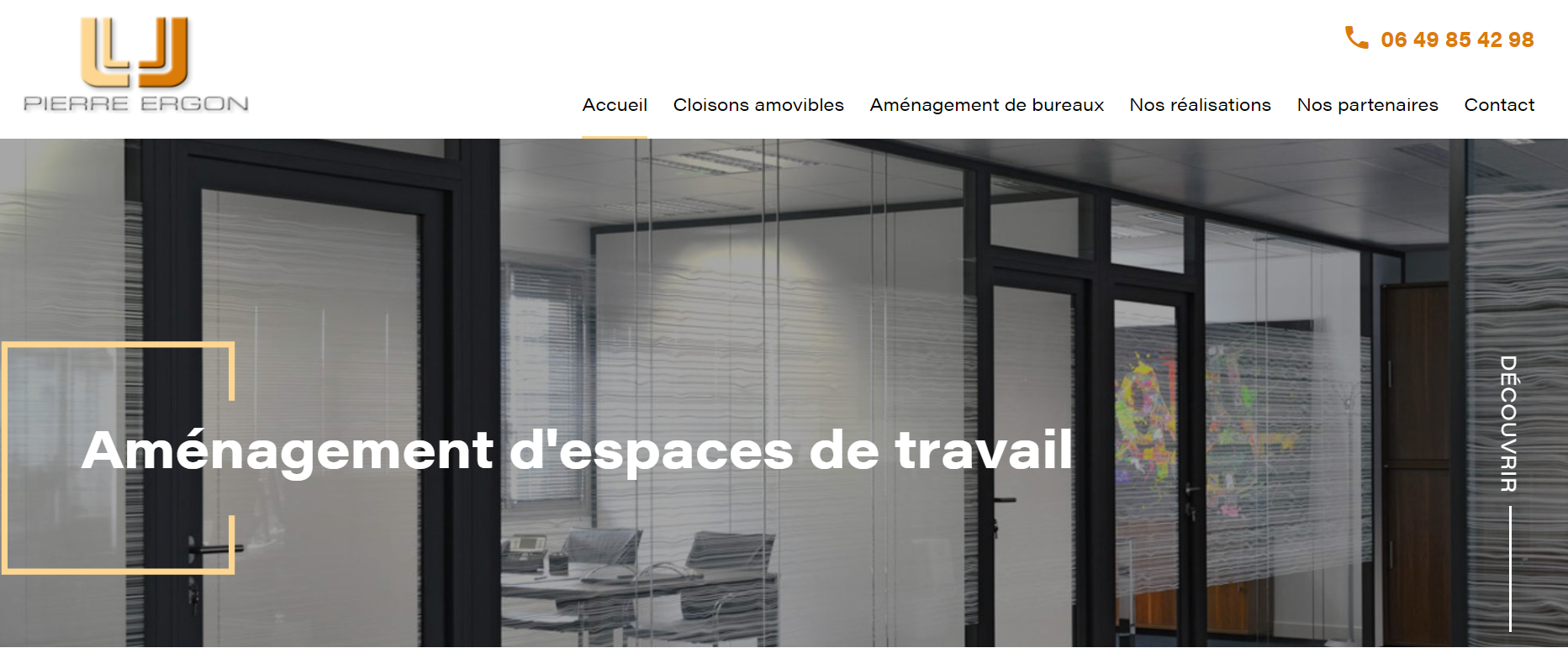 L'entreprise Pierre Ergon est spécialisée dans l'aménagement de bureau ainsi que la fabrication et l'installation de cloisons amovibles à destination des professionnels. Installée à Septème en Isère depuis 2011, elle intervient au sein des entreprises, commerces et salles de sport à Lyon et ses alentours (Vienne, Saint Quentin Fallavier, etc.)