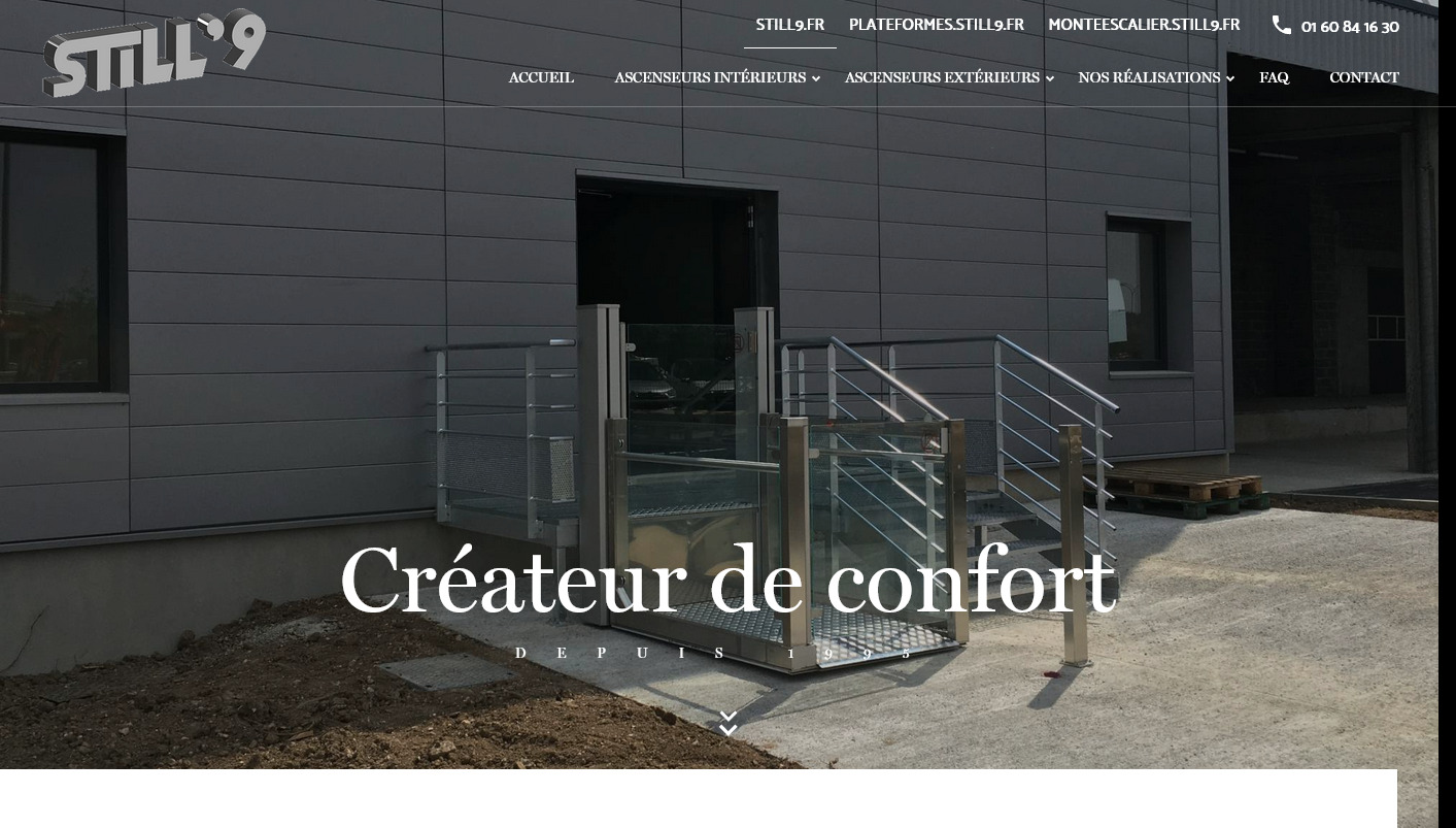 Fort désormais de près de 30 ans d'expérience dans ce secteur, Still 9 fait désormais partie des entreprises leaders du marché, notamment en Ile-de-France. Ce qui lui permet de proposer également l'installation de plate-formes élévatrices en exterieur près de Clamart et dans les secteurs voisins. Profitez d'un devis gratuit et d'un déplcament de l'un de leur techniciens pour découvrir nos options et réaliser une étude de faisabilité pour votre projet.