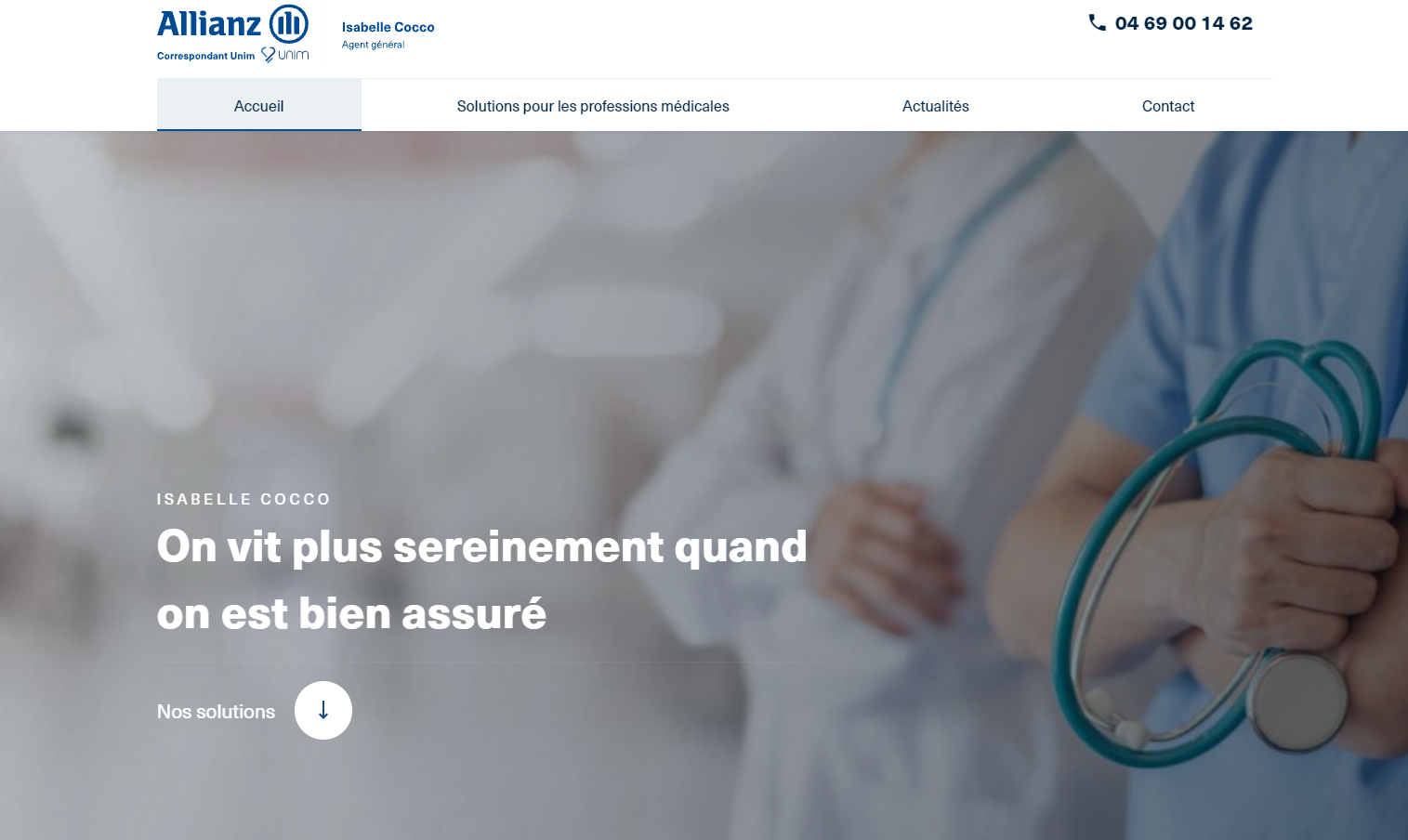 Isabelle Cocco est un assureur certifié Allianz et en partenariat avec l'Unim à Six Fours les Plages qui propose diverses solutions d'assurances pour les professionnels de santé (médical et paramédical) dans le département du Var. Médecin généraliste, infirmiers libéraux, sage-femme libérale, kinésithérapeute ou encore osthéopathe ont des besoins spécifiques en termes d'assurance, de prévoyance santé ou encore de mutuelle. Voilà pourquoi les équipes d'Isabelle Cocco Assurance, spécialiste des assurances pour les métiers médicaux et paramédicaux sont les plus à même de les conseiller. Rendez-vous sur le site internet et demandez un devis !