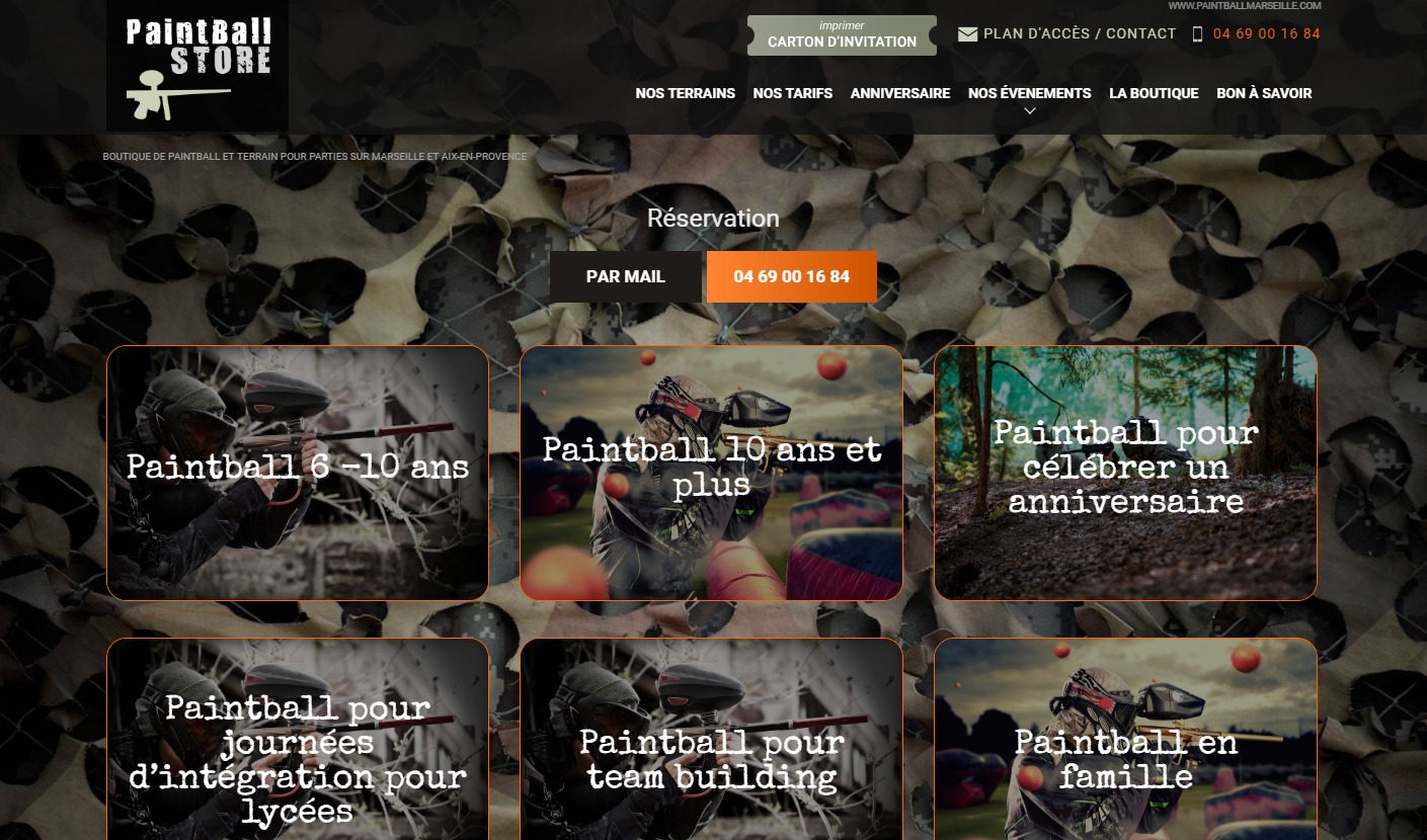 Paintball Marseille nous a fait confiance pour l'élaboration de son site. Ces experts vous proposent des équipements neufs ou occasions dans leur boutique paintball sur Marseille. Vous pourrez trouver des vêtements, vestes, pantalons pour la pratique de cette discipline. Vous aurez également accès à la vente de lanceurs et pistolets de marques. Vous pourrez aussi réserver nos terrains pour des parties dans le plus grand site des Bouches du Rhône.