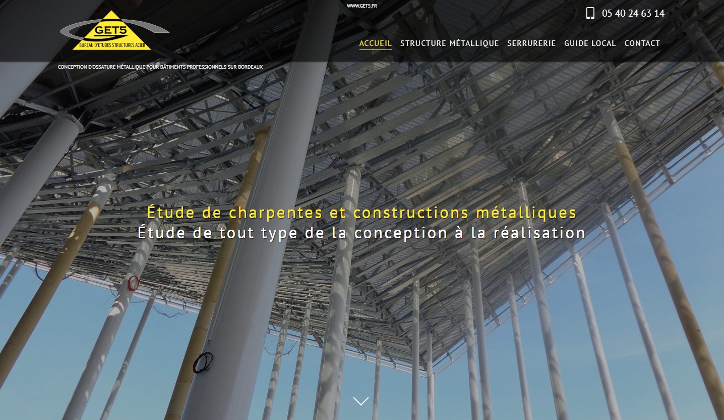 Ainsi, découvrez le site de la société GET5 qui est un bureau d'étude pour structure métallique sur Bordeaux. Ce cabinet d'ingénierie réalisera la conception et la réalisation de tous vos projets de construction englobant des structures en métal ou en acier : toitures, charpentes, bardages, ossatures, serrurerie, etc.