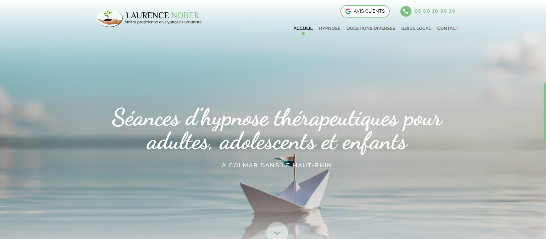 Découvrez notamment le site de notre client Laurence Nober, cabinet d'hypnothérapie à Colmar.