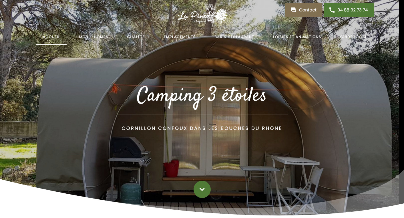 Le camping La Pinède est un client fidèle pour Jalis puisqu'il a décidé de renouveler sa confiance en optant pour un nouveau site de la gamme e-lite, avec l'offre double impact qui lui permet d'avoir un site adaptable à tous les supports de navigation (ordinateur, tablette, téléphone).