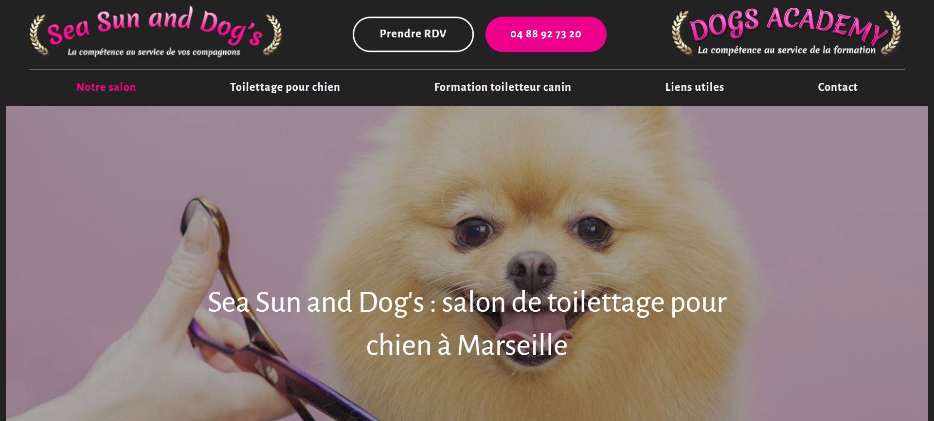 Dogs Academy est l’idée de Véronique Hachin, championne de France de toilettage canin. Cette école propose une formation toilettage canin à Marseille mise en valeur par l’expérience et le savoir-faire d’une toiletteuse professionnelle et récompensées de nombreuses fois. C'est également un salon de toilettage pour toutes races de chiens. Parcourez le site internet pour découvrir en photo les chiens avant et après leur toilettage. N'hésitez pas à prendre rendez-vous pour offrir un toilettage tendance à votre chien ou pour l'entretien (démêlage, lavage avec un shampoing spécialisé, séchage, brossage, épilation, taille des griffes, brossage des dents du chien ou encore nettoyage des oreilles et les poils superflus)