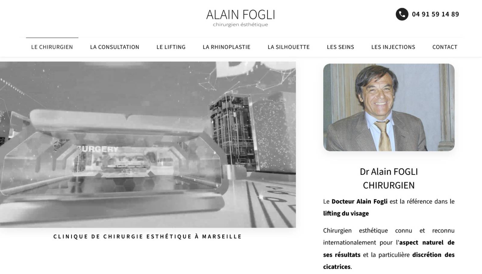 Pour la clinique du Dr Fogli, l'agence Jalis a conçu un site internet simple et clair afin de donner une vitrine élégante sur internet à ce chirurgien esthétique à Marseille. Au fil des rubriques, vous pourrez en savoir plus sur l'étendue des compétences de ce praticien reconnu. Lifting, pose de prothèse mammaire, rhinoplastie, injection de botox ou de graisse pour le comblement des rides... : le Docteur Alain Fogli intervient aussi bien sur de la reconstruction plastique que pour des interventions esthétiques luttant contre le vieillissement et le relâchement cutané.