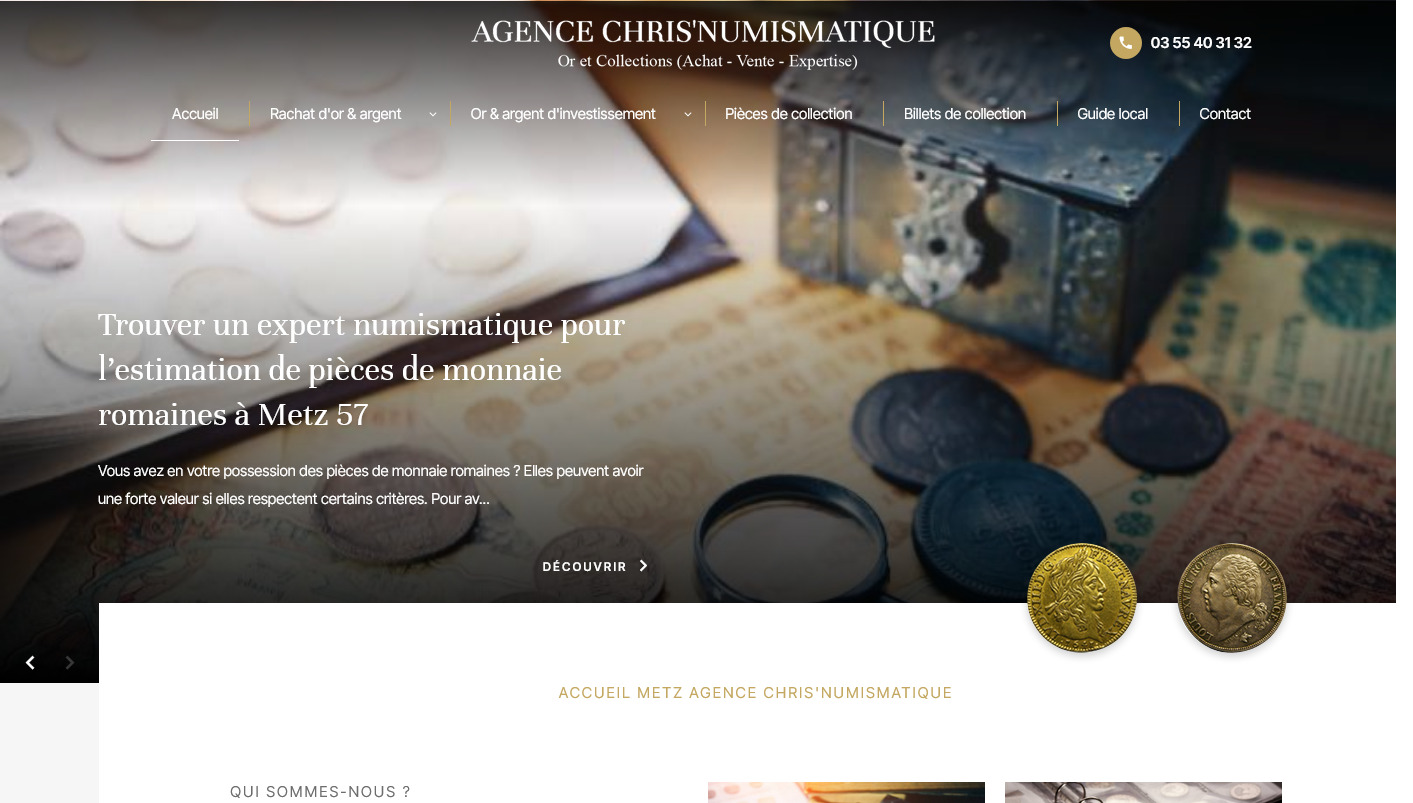 Pour la création de son site internet, Chris'Numismatique à Metz a fait appel à notre agence Jalis en région Grand Est. Il bénéficie d'outils de référencement brevetés pour lui permettre d'obtenir facilement de la visibilité en ligne.