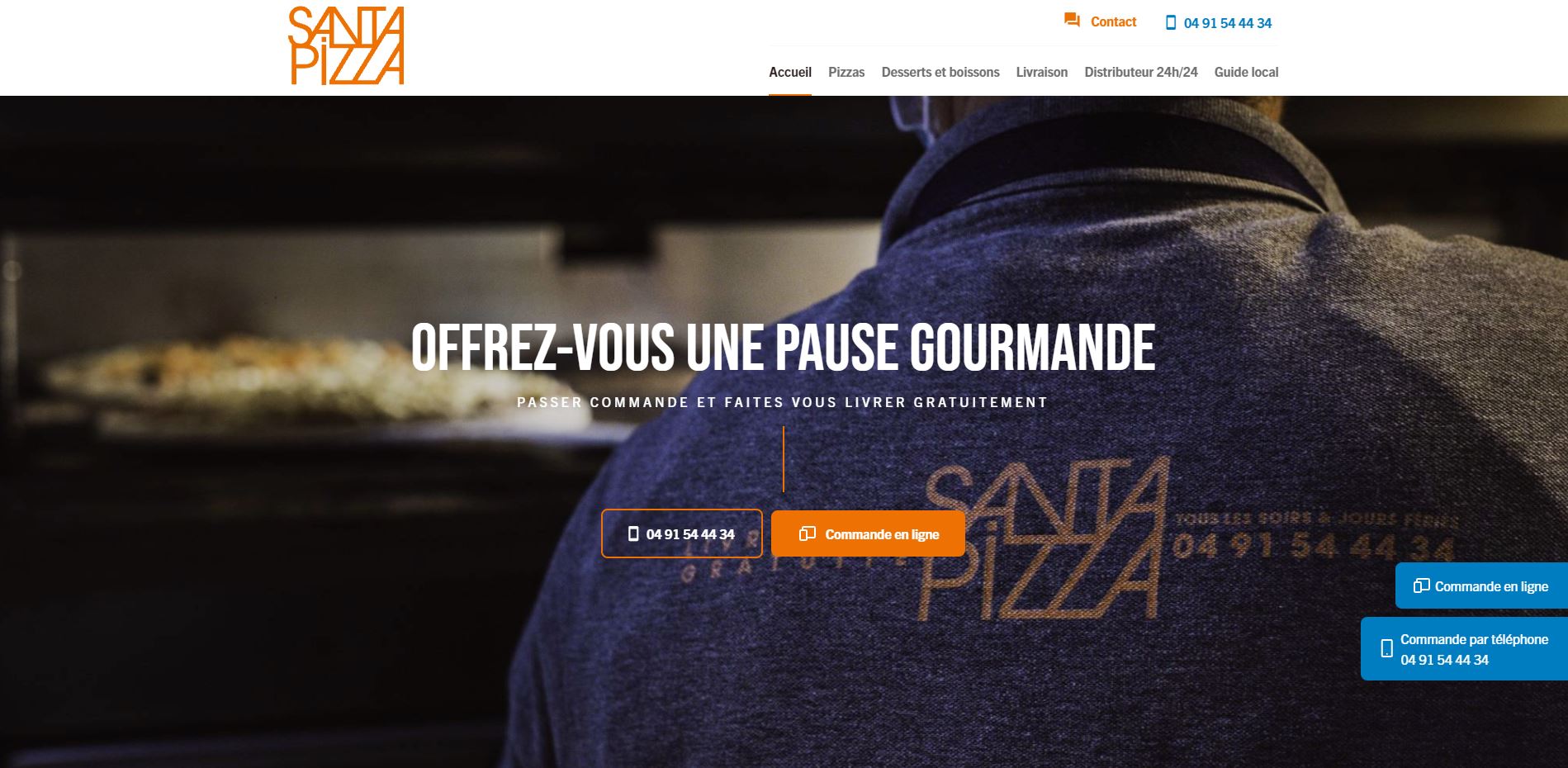 Depuis 1998, Santa Pizza propose des pizzas et chaussons savoureux, réalisés à partir de produits frais. La pâte est faîte sur place et les produits sont rigoureusements sélectionnés. Cette pizzeria, située dans le 7e arrondissement de Marseille, propose sur son site la commande en ligne, avec paiement 100% sécurisé. Vous pouvez ensuite emporter vos pizzas ou vous les faire livrer à domicile, du 1er au 7e arrondissement. Profitez de l'offre 3 pizzas achetées, la 4e offerte.