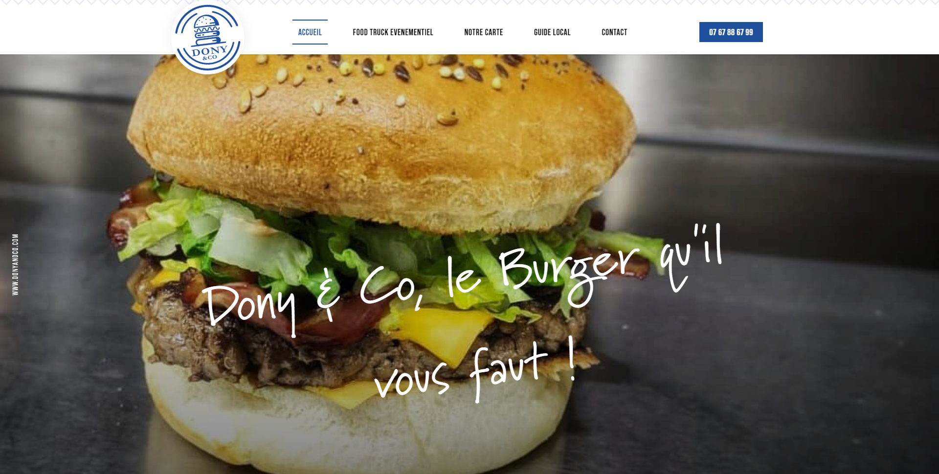 Découvrez le site du food truck DONY & CO spécialisé dans les burgers 100% faits maison. Ce camion traiteur propose à la fois un service de location de son camion pour des événements privés, publics et professionnels, et aussi un service de restauration rapide sur un emplacement fixe à Saint-Victoret.