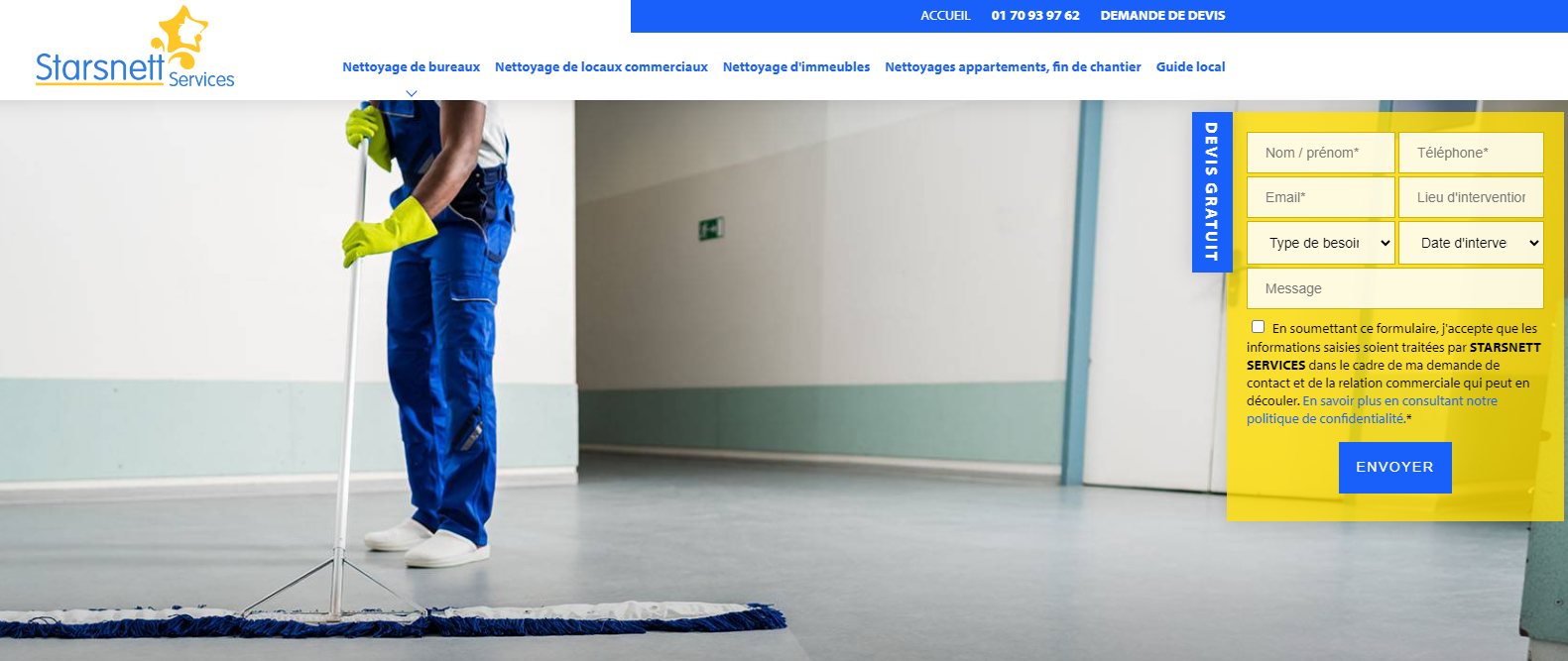 L'entreprise Starsnett Service a choisi la solution Jalis pour mettre en avant ses services et son expertise. Spécialisée en nettoyage professionnel de bâtiments, cette entreprise souhaite être visible en région parisienne pour attirer un maximum de nouveaux clients. N'hésitez pas à consulter leur site internet pour en savoir plus sur leurs services.