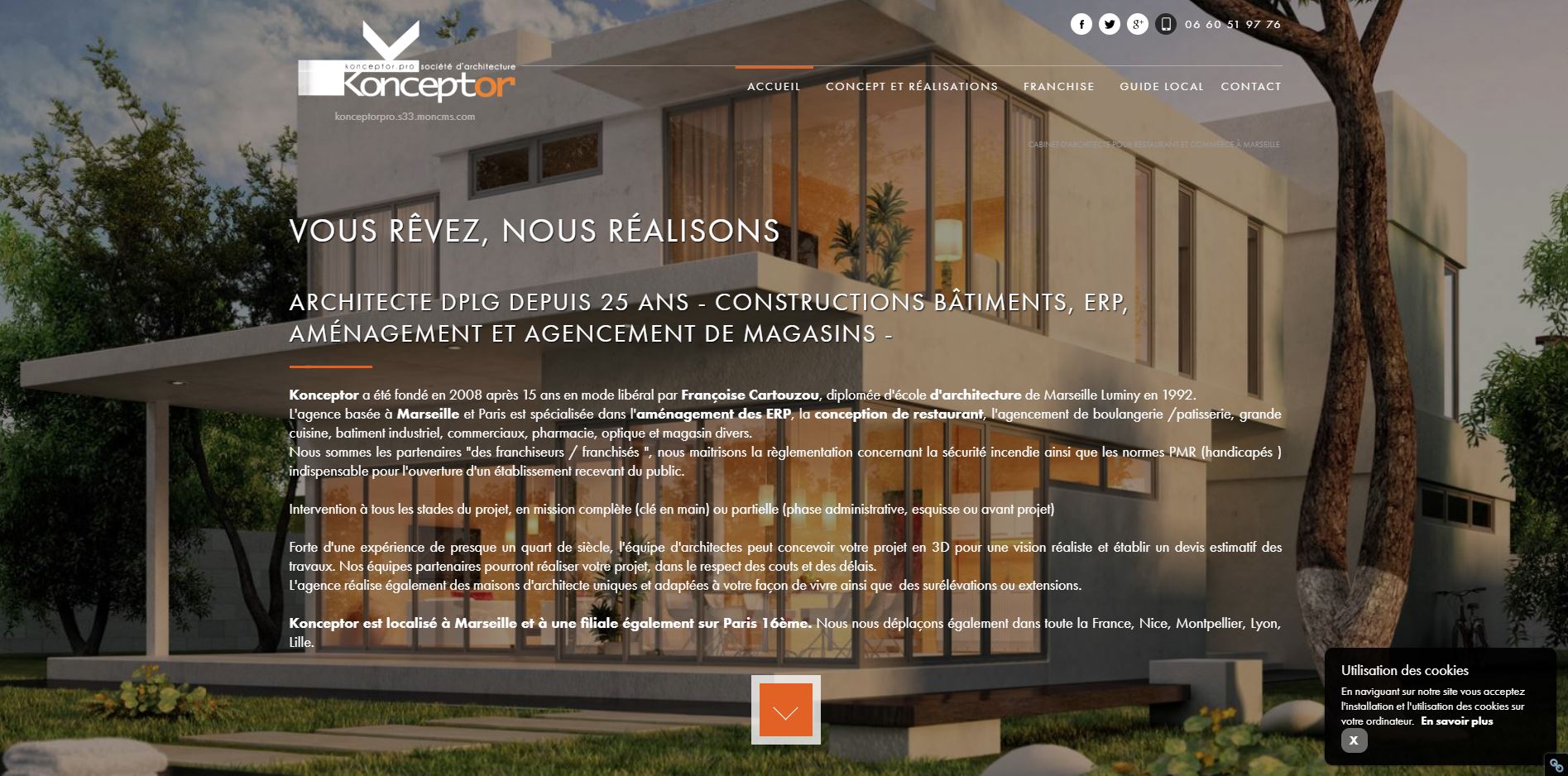 Konceptor est une entreprise spécialisée dans l'aménagement de restaurants et boulangeries à Marseille afin d'optimiser l'espace et agencer au mieux votre local commercial. Le cabinet d'architectes Konceptor vous propose également des prestations pour les particuliers avec la surélévation de maison, la transformation de maison ancienne, etc.