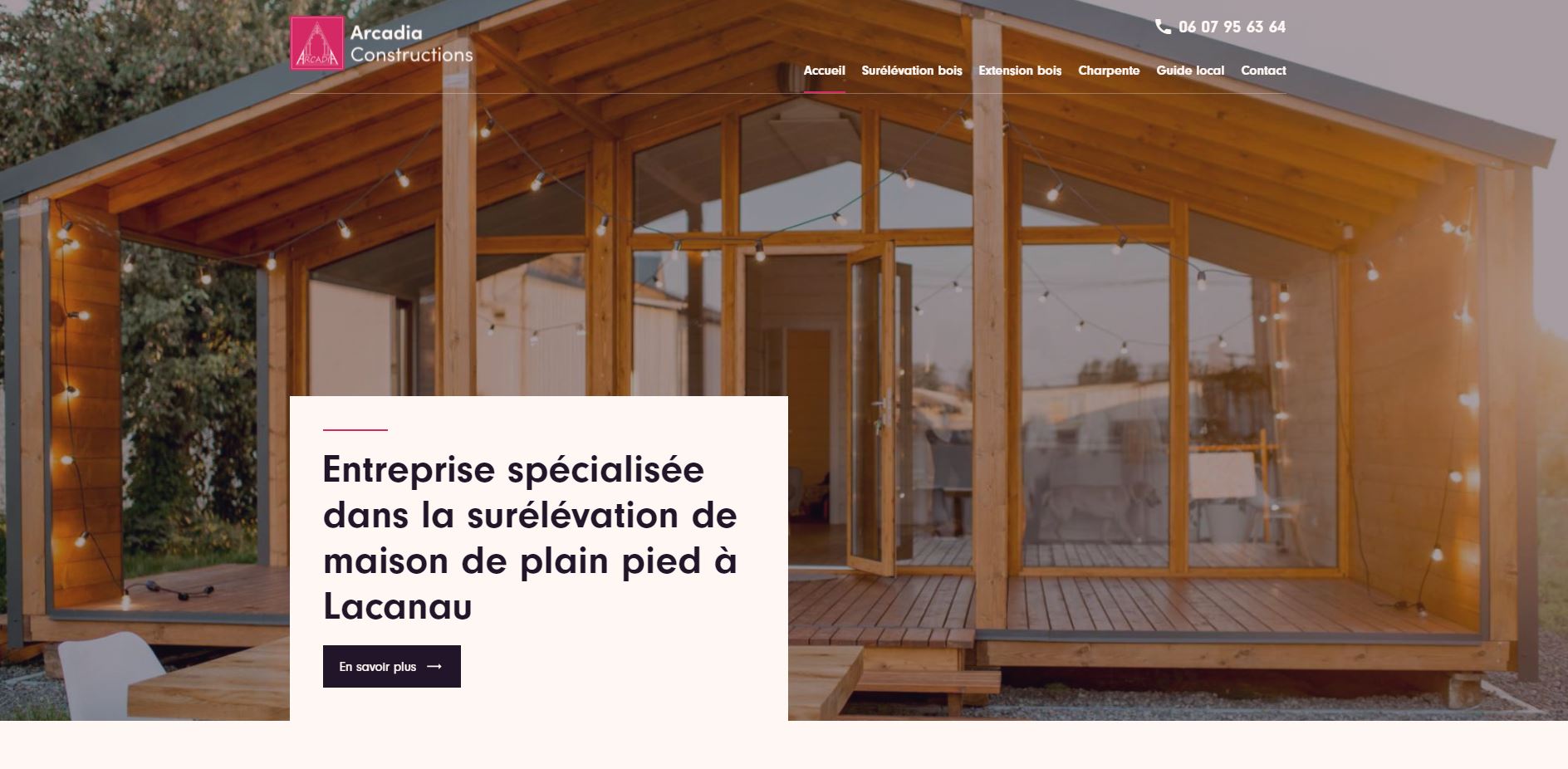 Arcadia est une entreprise spécialisée dans la surélévation de maison de plain pied à Lacanau. Cette entreprise spécialisée dans les constructions en bois s'occupe de la rénovation et la fabrication de vos charpentes, de vos extensions de maison, etc.
