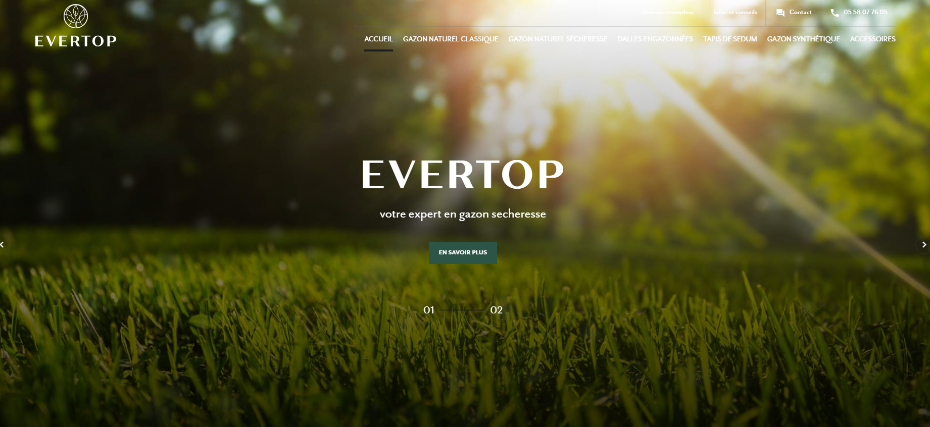 Evertop a confié à Jalis la conception de son site internet pour promouvoir son activité de pose et vente de gazon en France.