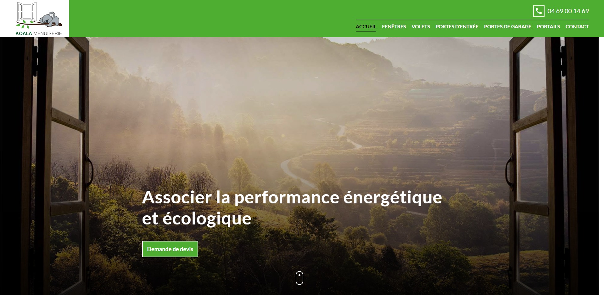 L’entreprise Koala Menuiserie a confié la conception de son site internet à nos équipes. Ils dispose d'un site UX/UI Design lui permettant de piloter facilement la visibilité de ses services. Pose de fenêtres sur-mesure à Nîmes, installation de volets solaire à Arles, remplacement de porte d'entrée à Avignon : découvrez leurs différentes gamme de produits pour la rénovation de votre habitat. C'est le moment d'augmenter les performances énergétique de votre maison ! L'entreprise de révotion de menuiserie extérieurs se déplace sur l'ensemble des Bouches-du-Rhône, du Gard, de l'Hérault et du Vauclaure.