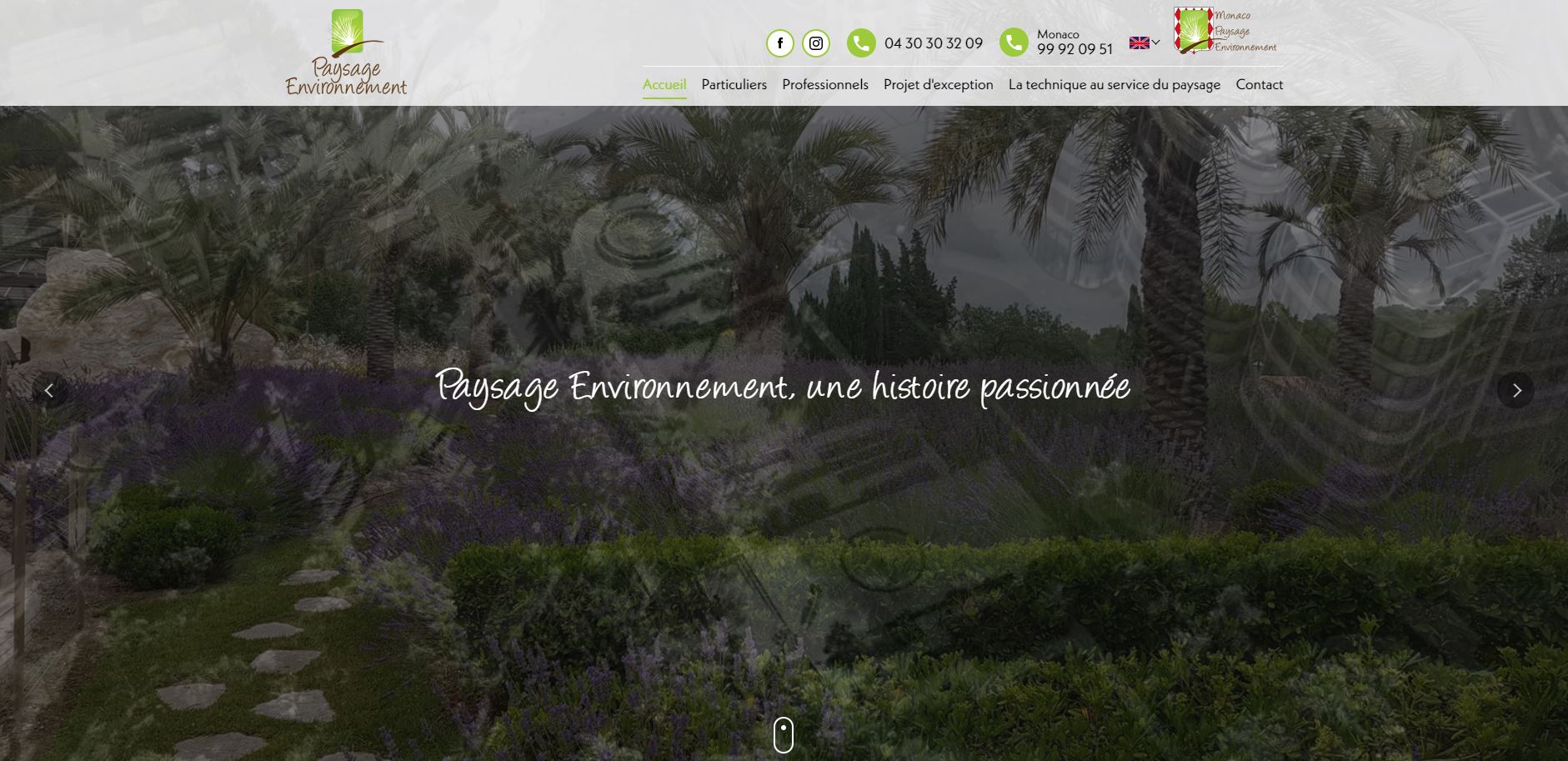 Paysage Environnement a confié à Jalis la conception de son site internet pour promouvoir son activité de paysagisme de Nice à Monaco.