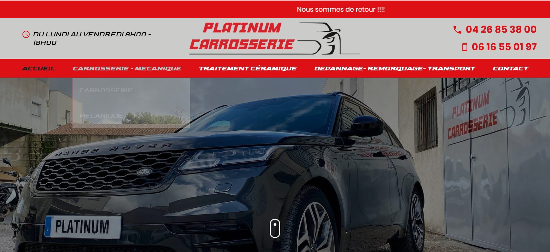 Le Garage Auto Platinium Carrosserie à Carnoux-en-Provence, a confié à l'agence Jalis spécialisée dans le référencement SEO, la conception de son site web. Site web full écran en responsive, mise en avant des promos du moment, mise à disposition d’un outil brevetés et simples d'utilisation pour accélérer le référencement naturel du site internet : vous aussi découvrez la puissance des outils Jalis.