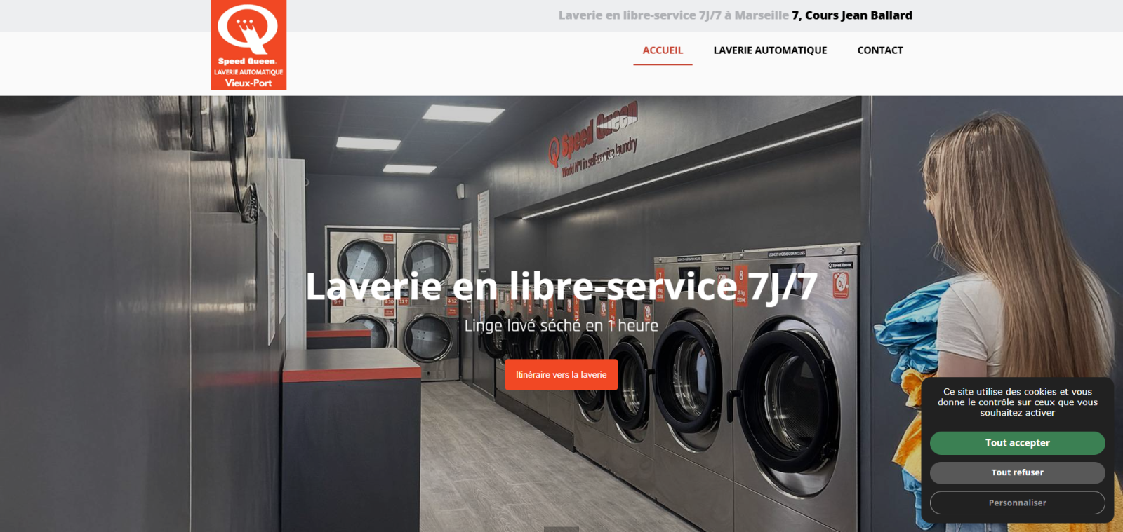 L’agence Jalis a accompagné Speed Queen 13 dans la création de son site internet optimisé SEO, reflet fidèle de son concept de laverie automatique nouvelle génération à Marseille centre. Pensé pour offrir une navigation fluide, un référencement naturel performant et une visibilité locale maximale, le site met en avant les services accessibles 7j/7, les machines professionnelles Speed Queen et les avantages pratiques du libre-service sécurisé. Grâce à une stratégie de contenus ciblés et une structure web adaptée aux recherches locales, Speed Queen 13 bénéficie désormais d’une présence digitale à la hauteur de ses ambitions.