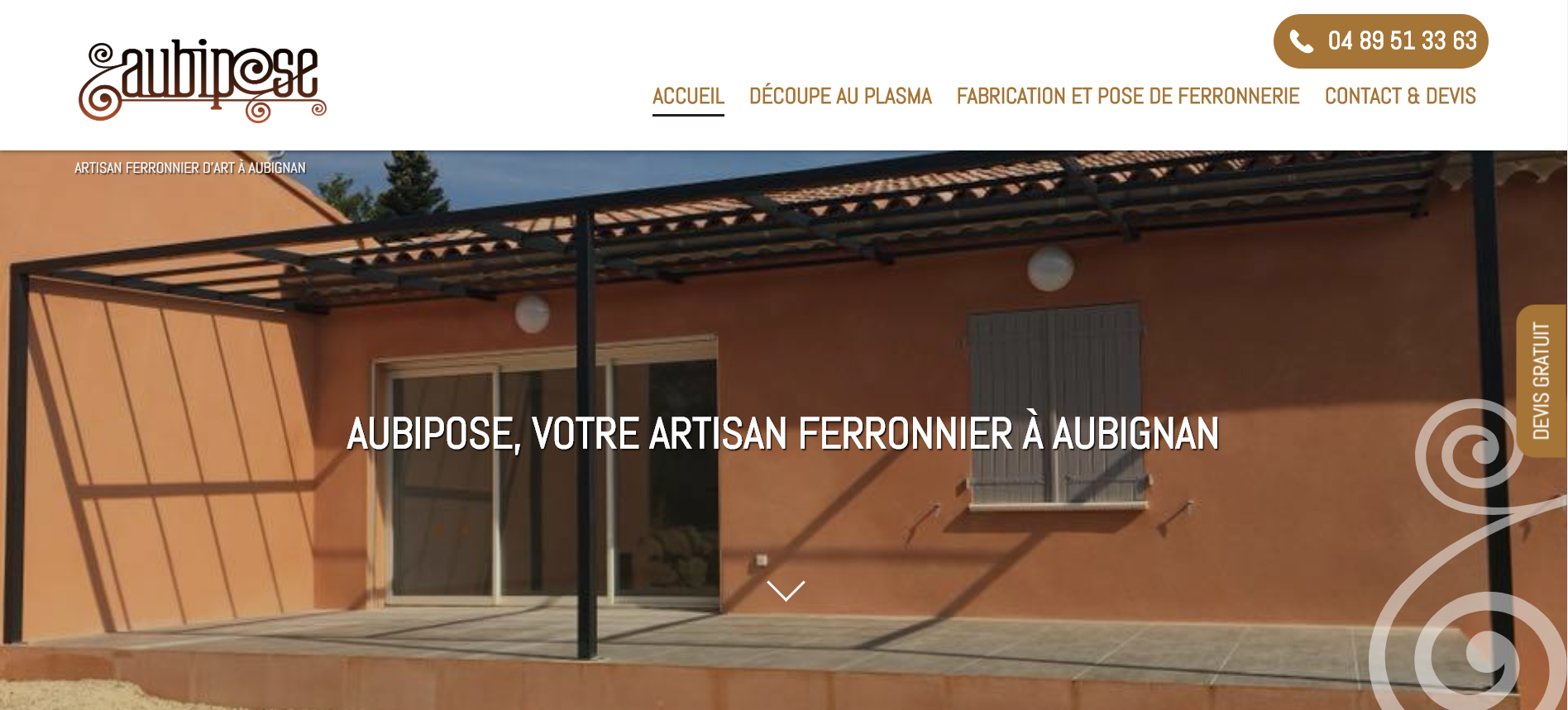 Aubipose à Orange 84100 est une entreprise de ferronnerie d'art qui réalise pour vous des objets d'art pour une idée cadeau originale pour homme ou pour femme ainsi que la fabrication est la pose de portail sur mesure en aluminium ou en acier, la réalisation de garde corps de terrasse, la découpe au laser pour la décoration et la réalisation de motifs. Le site internet de Aubipose a été créé par l'agence web Jalis, experte en création de site internet et en référencement naturel et payant.