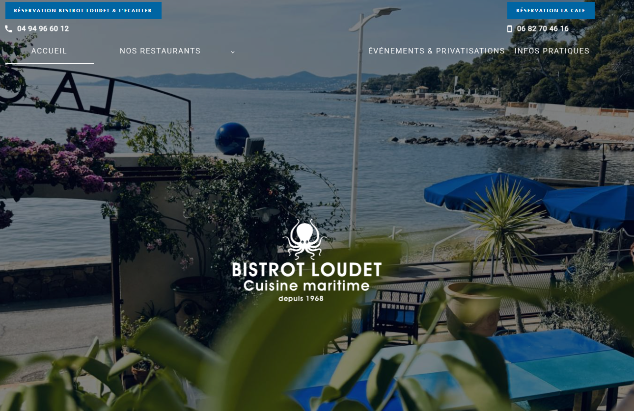 Le restaurant Le Bistrot Loudet, situé à Saint-Raphaël, a choisi la solution Jalis pour développer sa visibilité sur le web. Installé depuis de nombreuses années sur le port, ce restaurant de cuisine locale propose une carte riche en produits frais et en fruits de mer. N'hésitez pas à consulter leur site internet pour en savoir plus sur nos compétences mais également pour connaitre leur carte et réserver une table au sein de leur établissement.