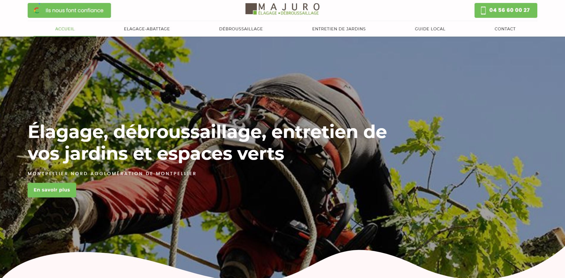 Découvrez aujourd'hui une de ses dernières réalisations, le site du client Majuro, entreprise spécialisée dans l'élagage et l'abattage d'arbre à Saint-Gely-du-Fesc. Ils proposent également des services de débroussaillage et entretien de jardins privés et de communes.