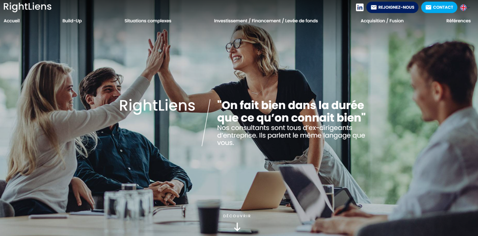 L'agence Jalis est fière d'avoir conçu le site internet optimisé SEO de RightLiens, cabinet de conseil en stratégie d'entreprise basé à Paris et en Île-de-France. Grâce à une approche sur mesure, Jalis a mis en avant l'expertise de RightLiens en cession, acquisition et financement d'entreprises, tout en intégrant un design moderne et une navigation fluide. Ce site, pensé pour les utilisateurs, offre une visibilité renforcée sur les moteurs de recherche et valorise les services clés de RightLiens. L'équipe Jalis, spécialisée dans le référencement naturel, a travaillé sur un contenu ciblé et performant pour maximiser l'impact numérique de cette entreprise. Une collaboration qui démontre l'importance d'une présence web efficace et optimisée.