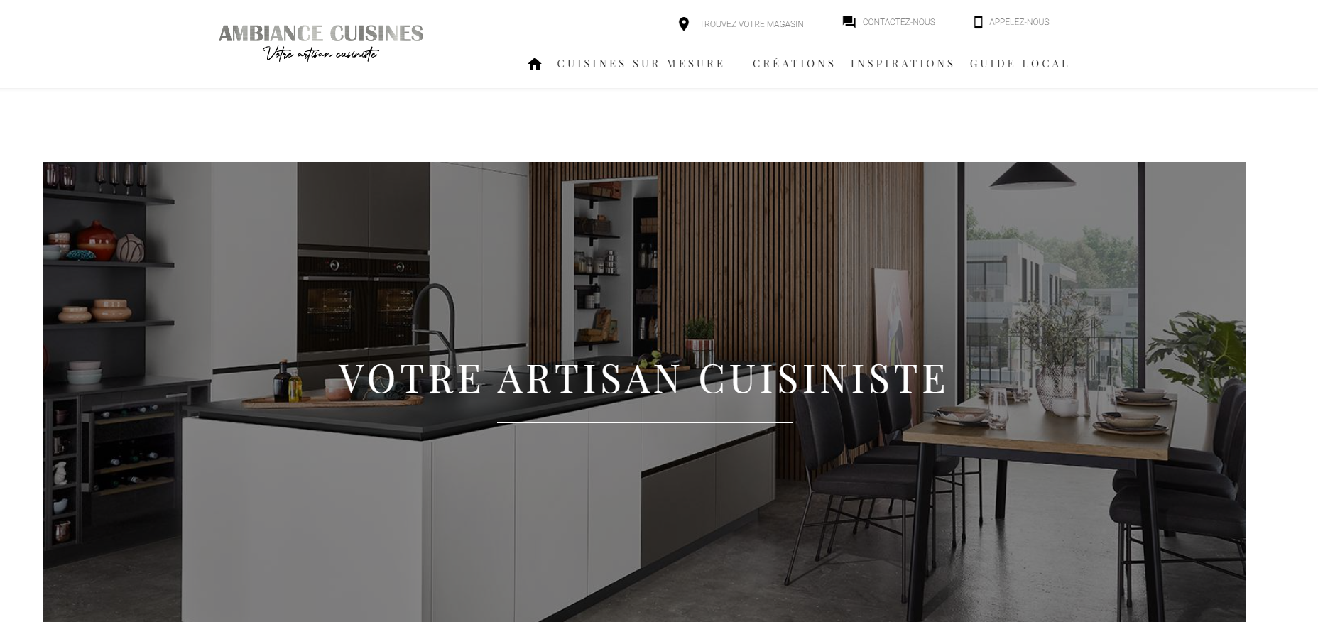 Découvrez le site Ambiance Cuisines, cet artisan cuisiniste vient de reprendre un magasin de cuisine et souhaite attirer une nouvelle clientèle afin de développer son activité de cuisiniste. Ambiance Cuisines est spécialisé dans la conception de cuisine sur mesure et intervient pour votre projet sur Valence et villes alentours.