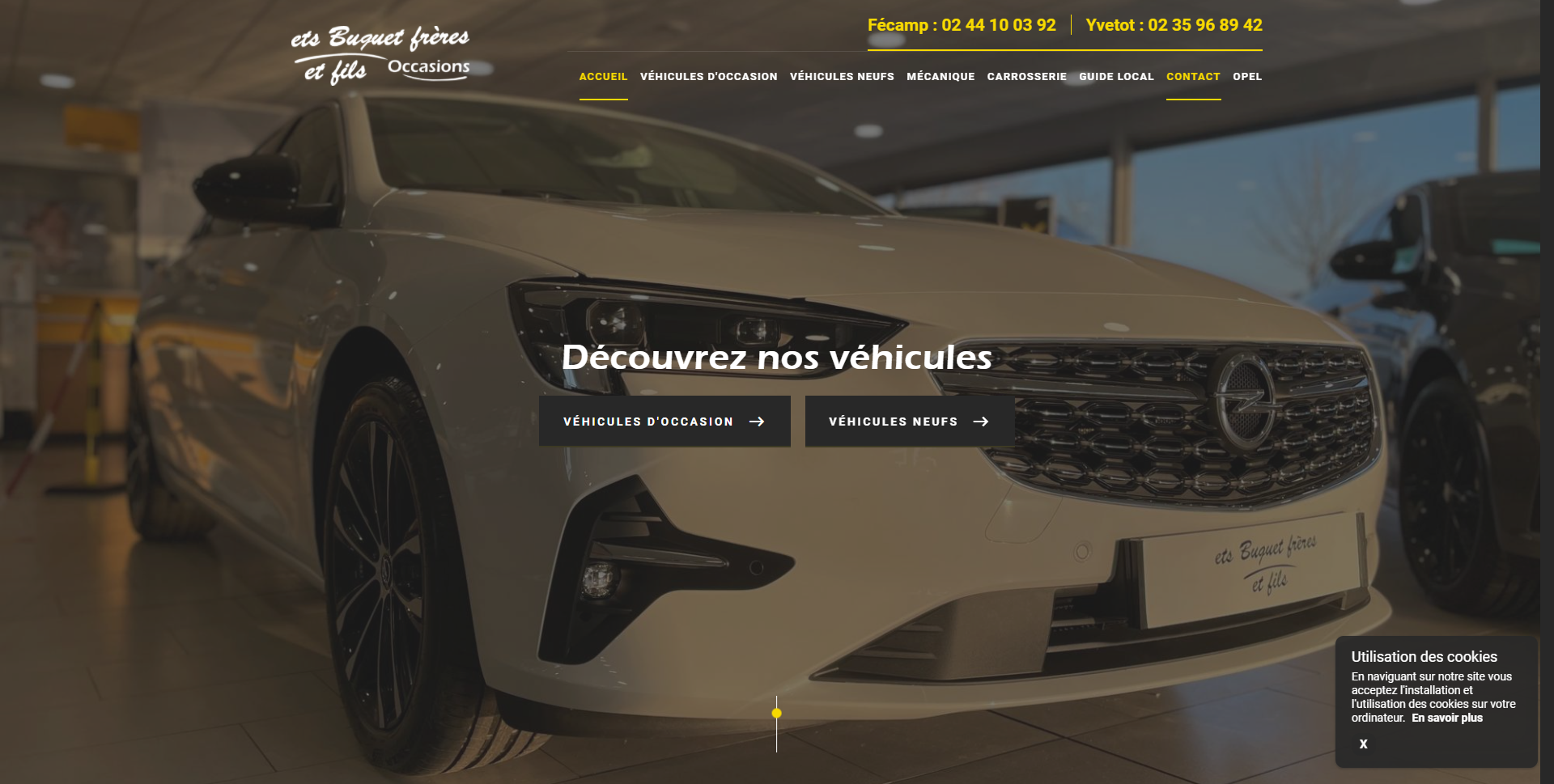 Les établissements Buquet et Frères proposent la vente de voitures neuves Opel et voitures d'occasion toutes marques ( bmw, mercedes, volkswagen etc). Ils disposent de deux concessionnaires, un à Yvetot et l'autre à Fécamp. Vous pouvez également effectuer vos réparations mécaniques et vos réparations de carrosserie dans leurs ateliers.