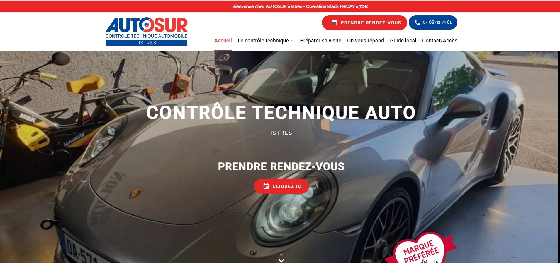 Avec son tout nouveau site, AUTOSUR à Istres est plus proche de ses clients. L’agence web JALIS a conçu un site internet accessible sur tous types d'écrans. Vous avez la possibilité de consulter ses tarifs, remises et promotions en cours pour un contrôle technique à Istres garantis au meilleur prix. AUTOSUR vous délivre également de nombreux conseils pour prendre soin de votre véhicule et préparer au mieux votre contrôle technique. Prenez directement rendez-vous en ligne pour votre véhicule essence, diesel, hybride ou électrique. Consultez sans plus attendre les horaires d'ouverture de ce centre directement sur le site.