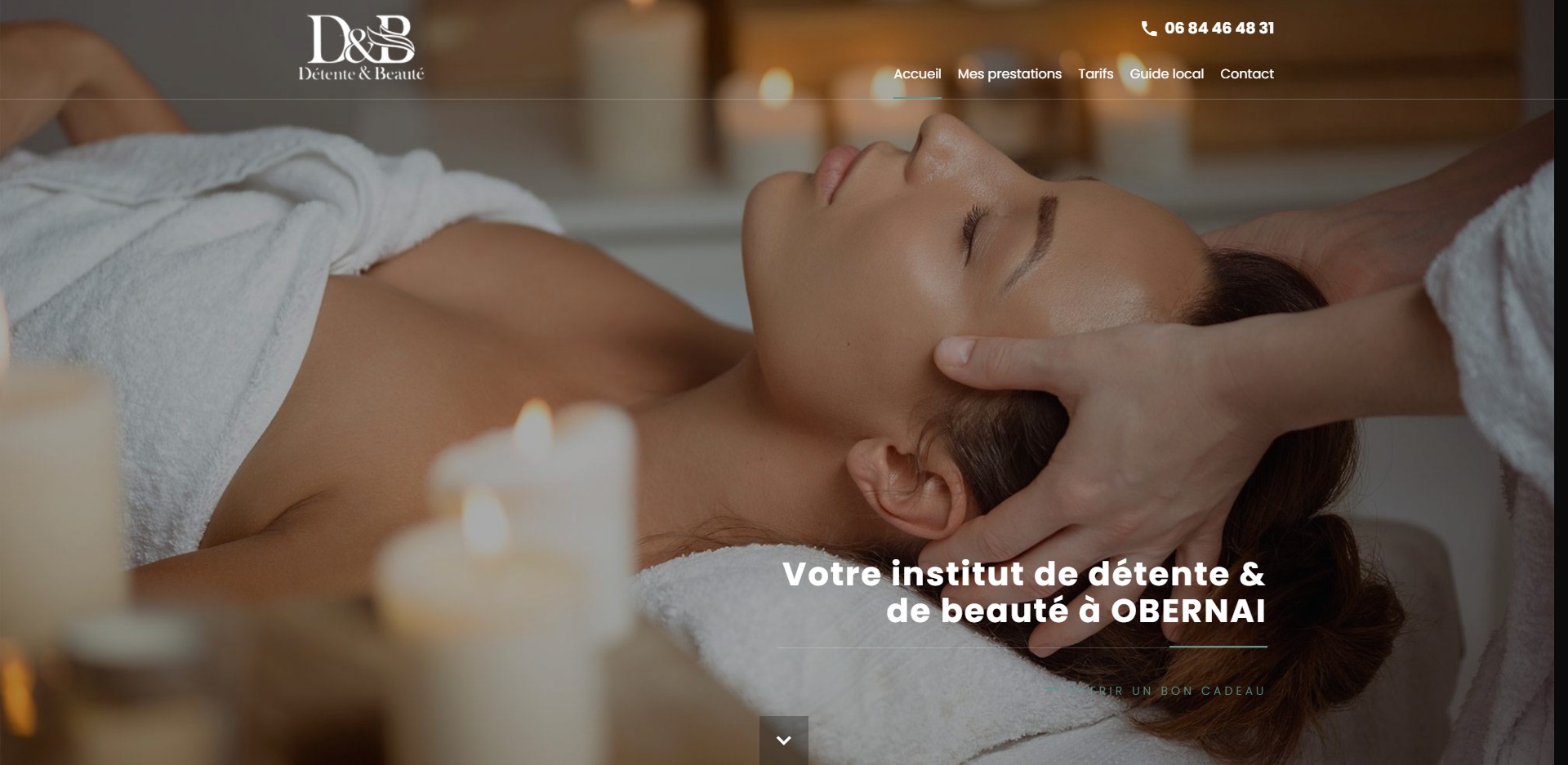 Désireux de recruter de nouveaux clients et de les fidéliser, l’institut de beauté Détente & Beauté a fait appel à nous. Il dispose d’un site internet lui permettant de mettre en avant leurs prestations de modelage du corps et de massage relaxant. Que ce soit pour un massage femme enceinte à Obernai, une épilation ou un soin anti-âge à proximité de Molsheim, découvrez sur le site internet les différentes offres de l'institut de beauté.