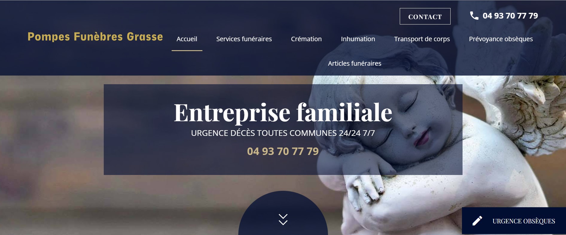 Pompes Funèbres Grasse est une entreprise spécialisée dans l'organisation de pompes funèbres sur Grasse (06). Ils prennent le temps d’offrir des conseils de qualité en assurant écoute, discrétion et bienveillance. Parcourez le site internet pour découvrir leur différents services sur-mesure : Organisation d'obsèques, Articles funéraires, crémation, inhumation et prévoyance