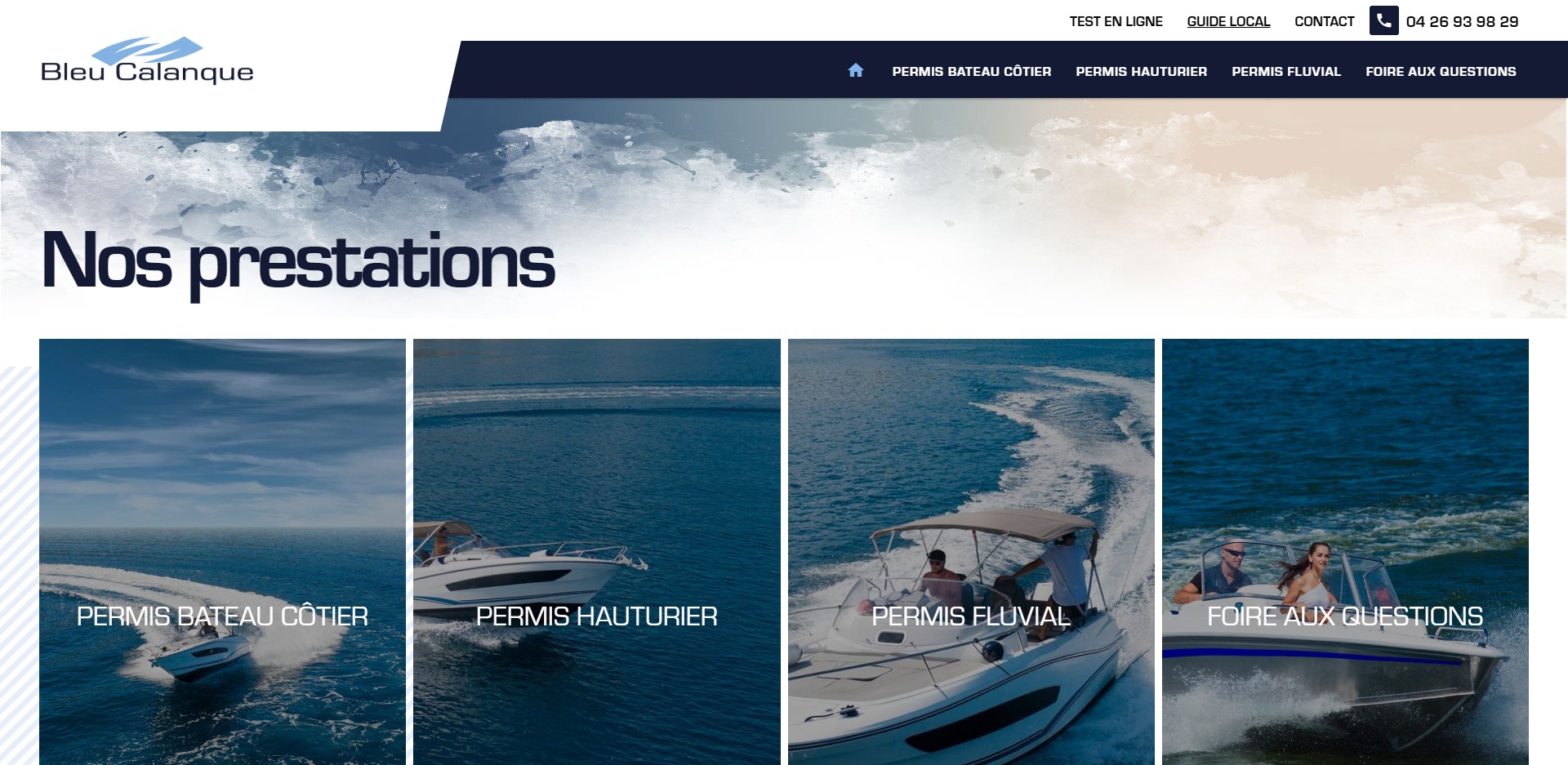 L’agence web Jalis a accompagné Bleu Calanque dans la conception de son site internet responsive sur-mesure. Ce client dispose désormais d’un design haut de gamme, d'un affichage HD plein écran et d’une visibilité performante sur les moteurs de recherche. L'arborescence du site à été conçu pour mettre en valeur les différentes formations du client et répondre efficacement aux besoins des internautes.