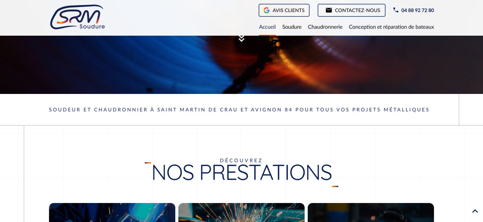 Pour valoriser le savoir-faire de SRM Soudure, Jalis a conçu un site internet sur mesure, moderne et optimisé pour le référencement local. Spécialisée en soudure et chaudronnerie à Saint-Martin-de-Crau, l’entreprise souhaitait renforcer sa visibilité en ligne et attirer de nouveaux clients. Le site met en avant les services phares de SRM Soudure, notamment la fabrication de pièces métalliques sur mesure, l'assemblage précis et les finitions de haute qualité. Avec une navigation fluide et un design soigné, le site favorise une expérience utilisateur optimale. Chaque section du site est pensée pour présenter les atouts de SRM Soudure : savoir-faire, expertise et réactivité. Grâce à la solution Jalis, SRM Soudure bénéficie d’une présence digitale efficace, attirant artisans, industriels et particuliers à la recherche d’un expert en soudure et chaudronnerie à Saint-Martin-de-Crau. Besoin d’un devis ? Un simple clic suffit !