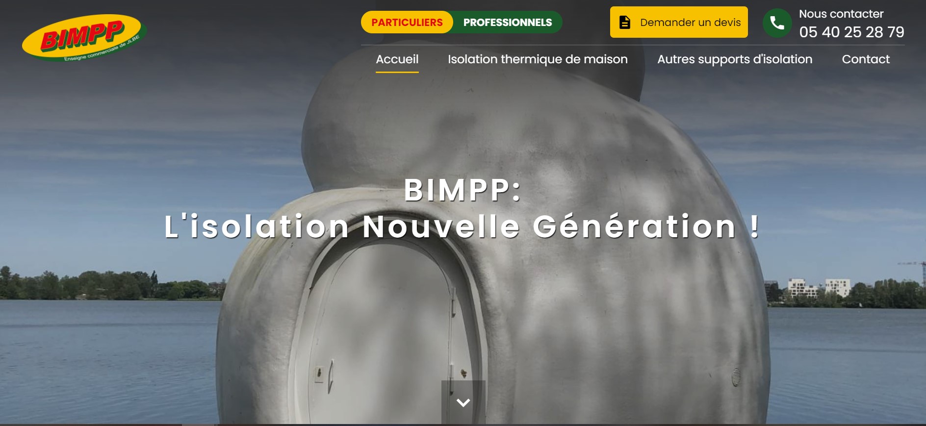 La société BIMPP a également confié à Jalis la conception d'un site internet pour son activité d'isolation thermique pour bâtiments industriels à Libourne. Par la projection de mousse polyuréthane, BIMPP assure à ses clients des performances énergétiques en hausse. L'entreprise RGE garantie des travaux de rénovation énergétique respectueux de l'environnement.