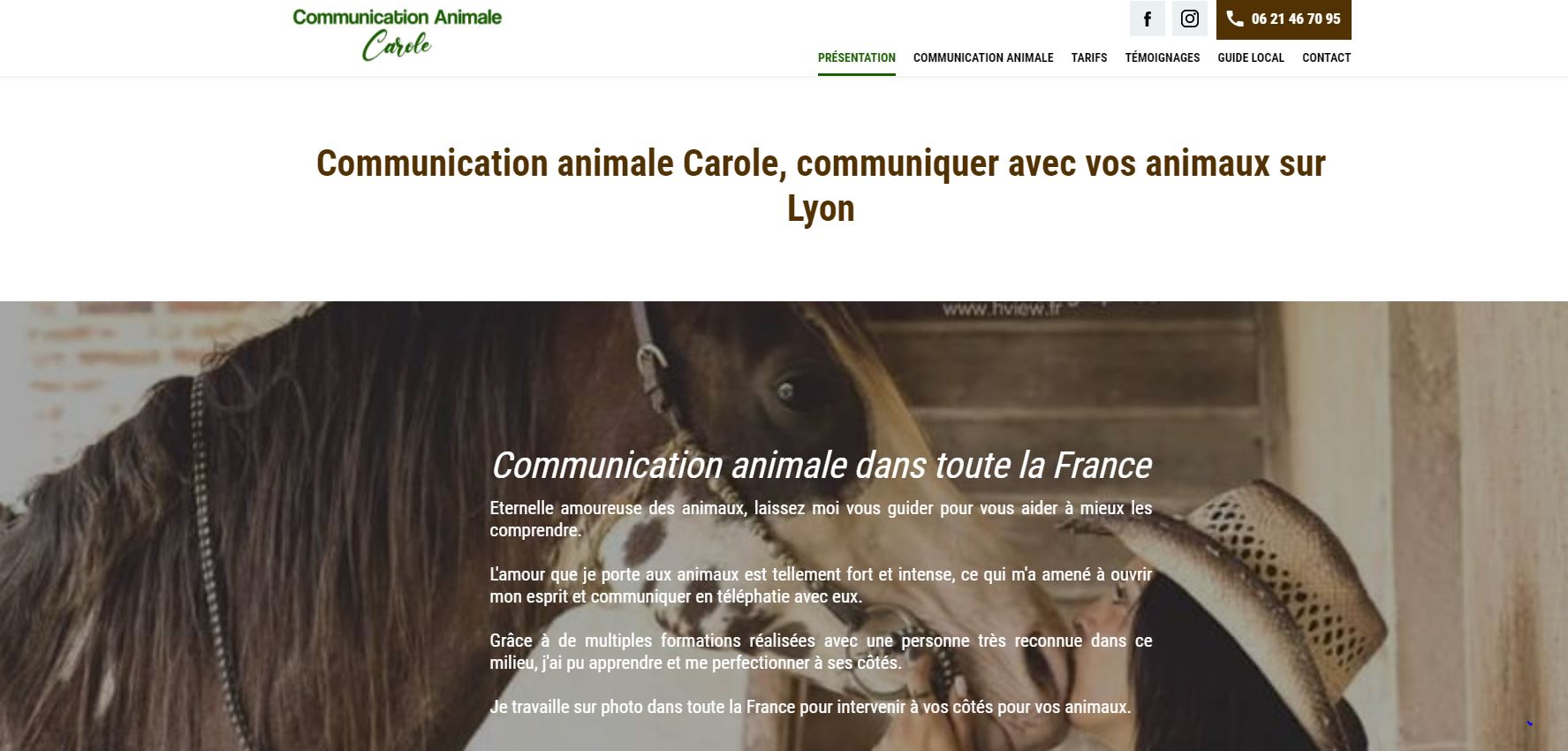Pour la création de son nouveau site internet, Communication Animale Carole sur Lyon a choisi Jalis. Notre agence web lui propose un site optimisé pour le référencement afin de lui permettre de trouver de nouveaux clients. Vous souhaitez comprendre votre animal et communiquer avec lui ? Votre animal rencontre des troubles du comportement et vous cherchez à le soulager de son stress ? Votre animal est en fin de vie ou est décédé ? Carole est depuis toujours une amoureuse des animaux et communique avec, grâce à son empathie, sa compréhension animale et à la télépathie animale. Elle vous aidera à comprendre votre animal et vous permet de l'éduquer, le détendre. La communication animale peut se faire à distance à partir d'une photo. Vous savez désormais à qui vous adresser !