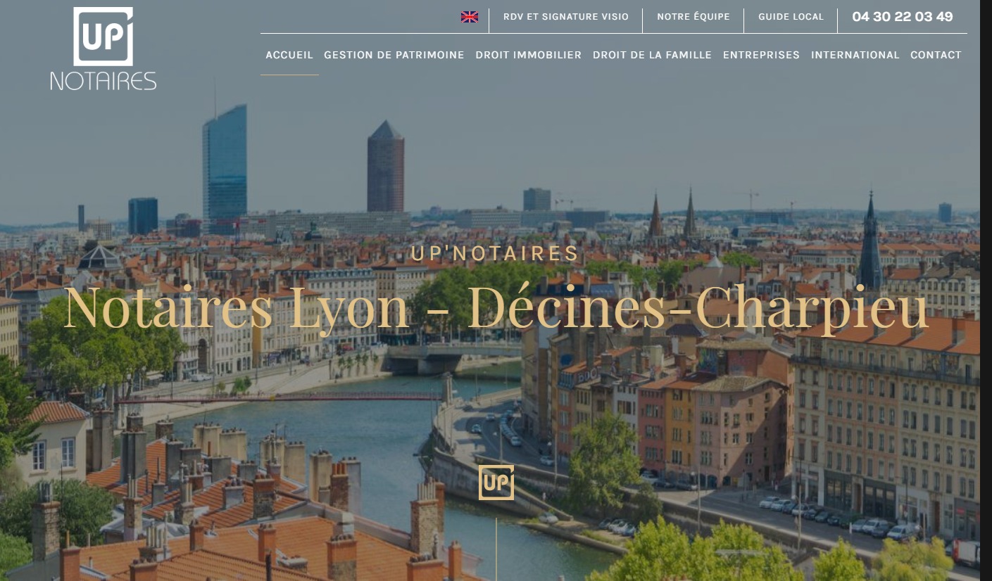 Le site de l'office notarial Up' Notaires, situé à Décines-Charpieu, à quelques kilomètres de Lyon, est la dernière création de notre agence web. À travers ce site, vous découvrirez l'étendu des compétences de l'étude notariale ainsi que l'équipe qui la compose. Ils sont plus de 30 collaborateurs à vous accompagner dans la gestion de votre patrimoine personnel et/ou professionnel. N'hésitez pas à consulter leur site internet pour en savoir plus et à nous contacter si vous souhaitez, vous aussi, obtenir un site de qualité.