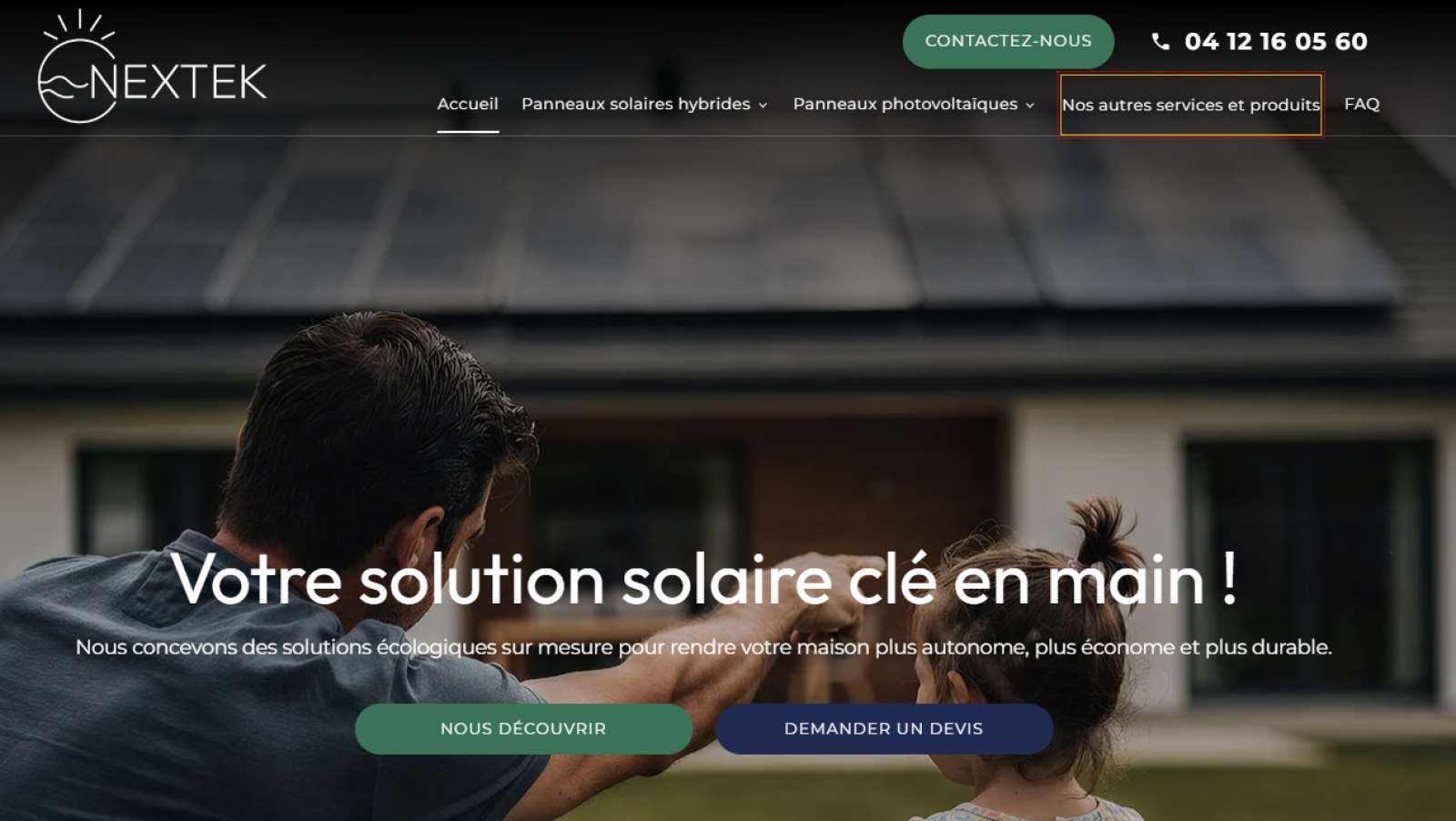 La société NEXTEK est spécialisée dans l’installation de panneaux photovoltaïques à Nans-les-Pins et dans tout le sud de la Provence. Grâce à une approche globale et sur mesure, elle propose des solutions solaires innovantes pour permettre aux particuliers de gagner en autonomie énergétique. L’entreprise se distingue par son expertise en panneaux solaires hybrides et systèmes de stockage, offrant une production optimale et un pilotage intelligent de l’énergie. Le site internet de NEXTEK, conçu par Jalis, reflète parfaitement cette expertise avec une navigation fluide, un design professionnel et un contenu axé sur la performance énergétique.