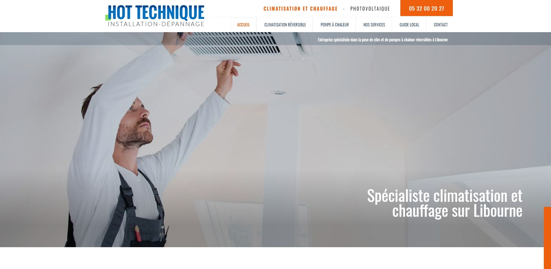 L'entreprise de plomberie Hot Technique est l'une des dernières créations de notre équipe. Ces plombiers chauffagistes vous proposent la pose d'un système de climatisation réversible à Libourne et ses alentours. Ils pourront s'adapter parfaitement à votre demande, en vous proposant diverses solutions : monosplit, multisplit, gainable, etc. Hot Technique intervient également pour tout travaux d'installation et d'entretien de pompe à chaleur. N'hésitez pas à consulter le site internet de cette entreprise et à demander un devis gratuit et personnalisé.