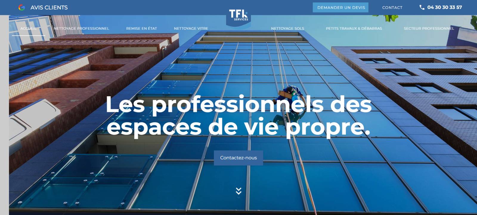 Le site web de TFK Services, entreprise spécialisée dans le nettoyage professionnel pour les entreprises, copropriétés et établissements médicaux, a été conçu et réalisé par l’agence web Jalis. Cette création a pour objectif de valoriser les différentes activités de la société : nettoyage de locaux, remise en état, vitrerie, petits travaux et débarras. Le site met en avant les engagements de TFK Services : intervention 7j/7, équipement professionnel, produits éco-responsables, devis gratuit et engagement RSE. L’ergonomie du site facilite l’accès aux prestations et permet un contact rapide pour les demandes d’intervention. Pensé pour le référencement local dans le secteur de Montpellier et ses environs, le site structure les contenus selon les attentes des professionnels en quête d’un prestataire réactif, expérimenté et rigoureux. Grâce à une interface claire et responsive, cette réalisation web renforce la visibilité de TFK Services et accompagne son développement dans l’Hérault.