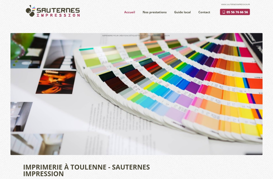 L'agence web Jalis a conçu pour Sauternes Impression, un site web responsive et résolument moderne. Véritable carte d'identité de l'entreprise, il est l'outil digital qui saura toucher de nouveaux clients. Grâce à un référencement géolocalisé, le site internet prospecte 24h/24 auprès de la zone de chalandise réelle de l'entreprise.