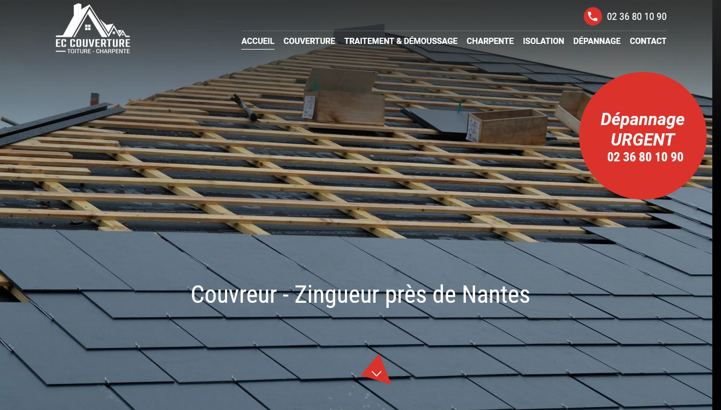 Découvrez le site internet de la société EC Couverture réalisé par Jalis. Ce commercial digital de gamme e-lite présente l'ensemble des prestations proposées par cet artisan à Rezé, à Nantes et dans les environs.