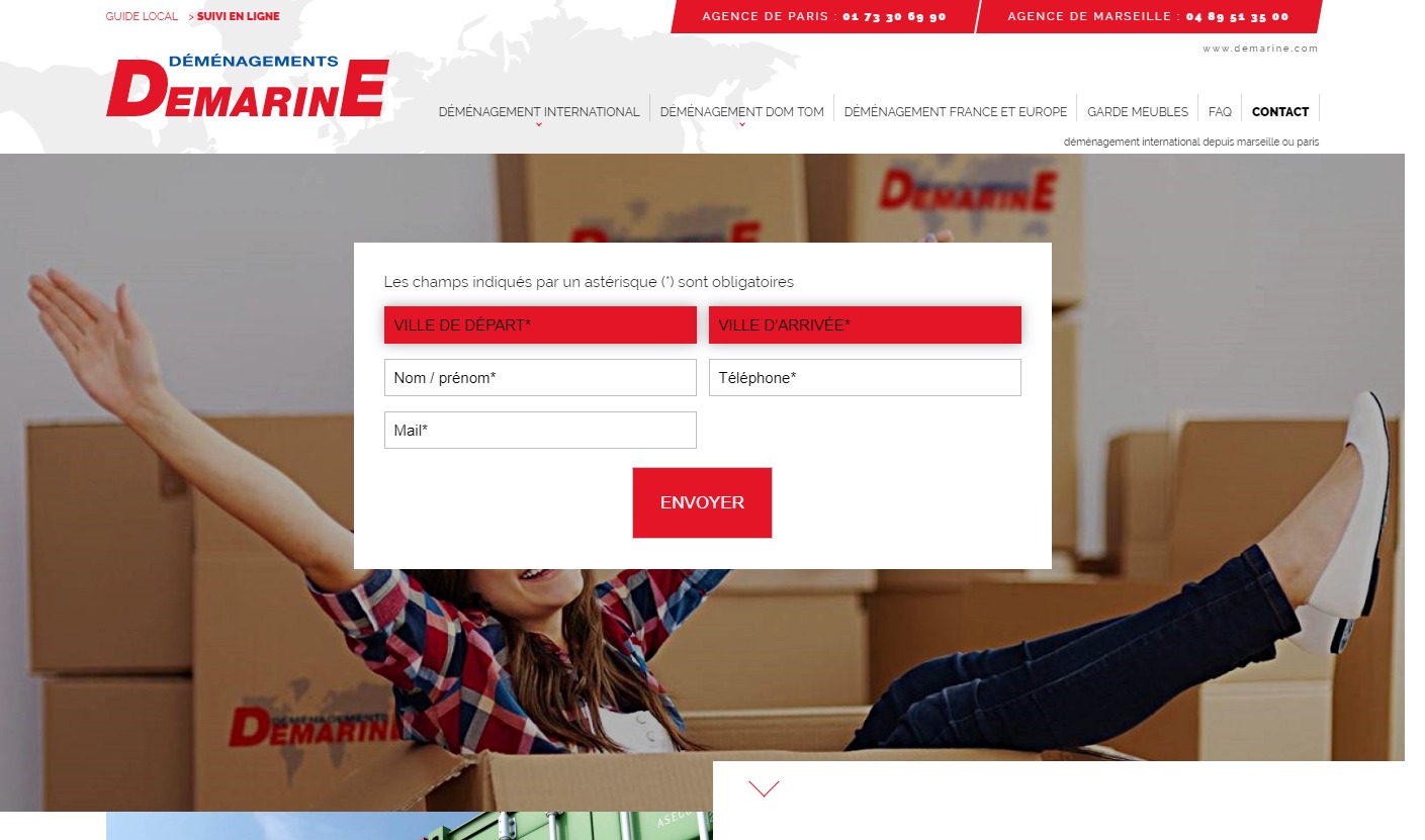 Demarine, déménageur professionnel, assure le déménagement de vos effets personnels en France et à l'international, en accompagnant notamment les salariés, fonctionnaires et militaires mutés à l'étranger ou expatriés.