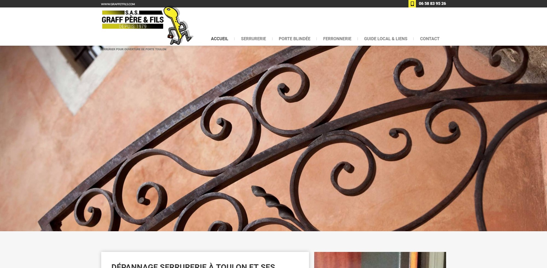 Graff et Fils vous propose ses services pour le dépannage de serrurerie à Toulon. Un artisan diplômé est disponible 7j/7 de jour comme de nuit pour vous dépanner en urgence. Il est en mesure d’ouvrir des serrures de toutes marques. Ces professionnels expérimentés réalisent aussi l’installation de porte blindée 5 points. Faites leur confiance pour vous orienter vers une porte ultra sécurisée qui répondra à vos besoins. Pour la fabrication d’un portail sur mesure ou d’une pergola, n’hésitez pas à contacter cet artisan ferronnier réputé à Toulon !