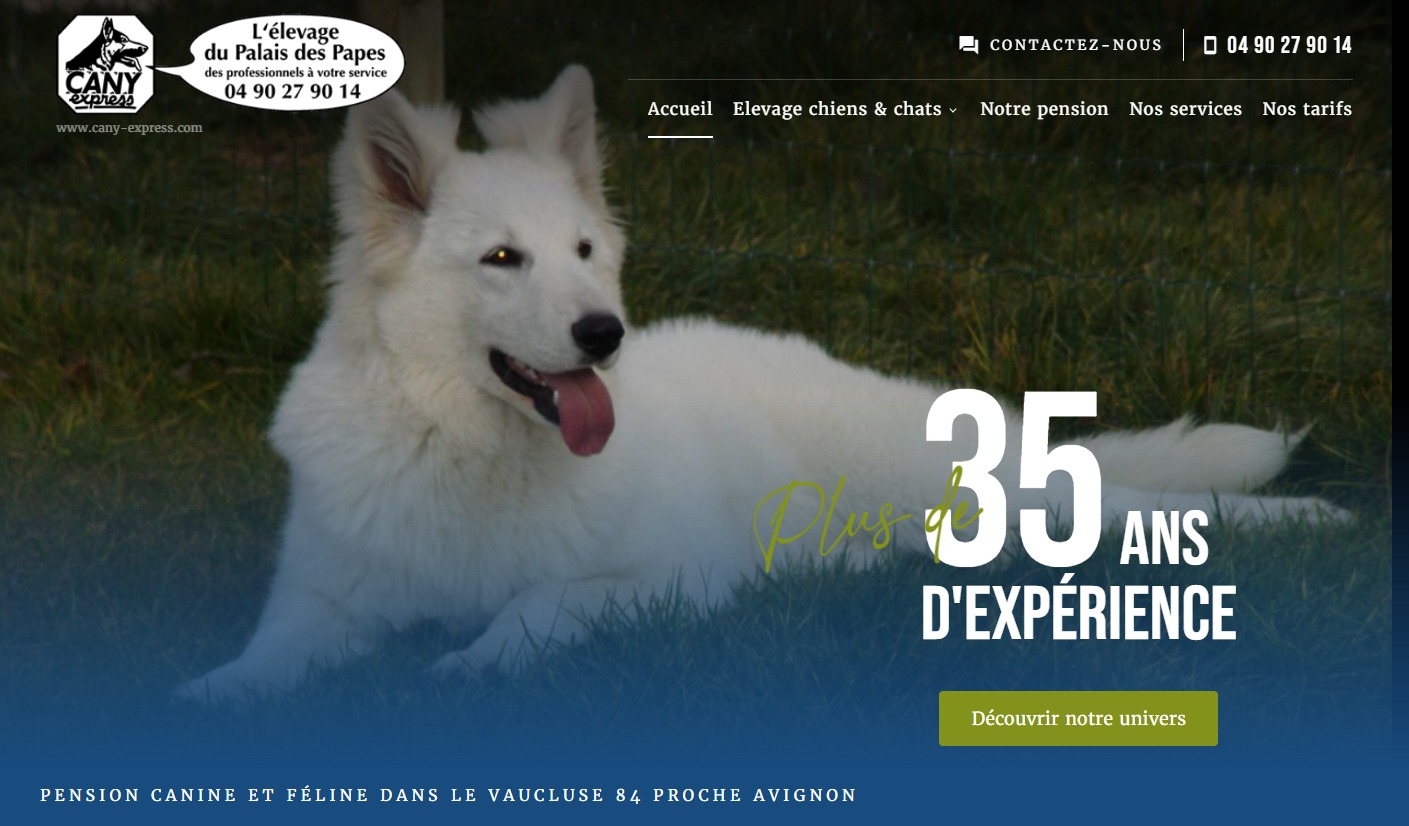 Par le biais de son site, Cany Express vous propose de découvrir son élevage de chiens et chats de race et sa pension pour animaux à Avignon. Découvrez sur son site internet, réalisé et référencé par Jalis, les naissances, leurs services (taxi animalier, boutique d'accessoires, salon de toilettage,...), ainsi que leur actualité et des vidéos pour vous faire une idée des lieux et ses conditions !