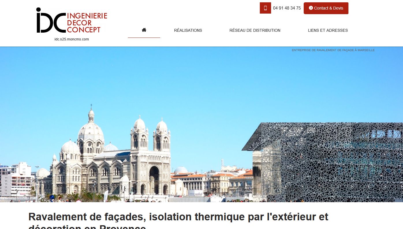 Satisfait de sa solution actuelle qui lui permet notamment de ressortir en 1e position sur la requête "ravalement de façade Marseille", IDC modernise son site internet et profite d'un outil bénéficiant des dernières avancées technologiques en terme de webdesign et de référencement naturel.