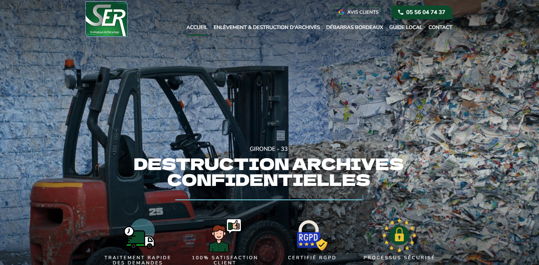 Découvrez notamment le site de notre client SER, entreprise de destruction de documents et d'archives confidentiels à Bordeaux.