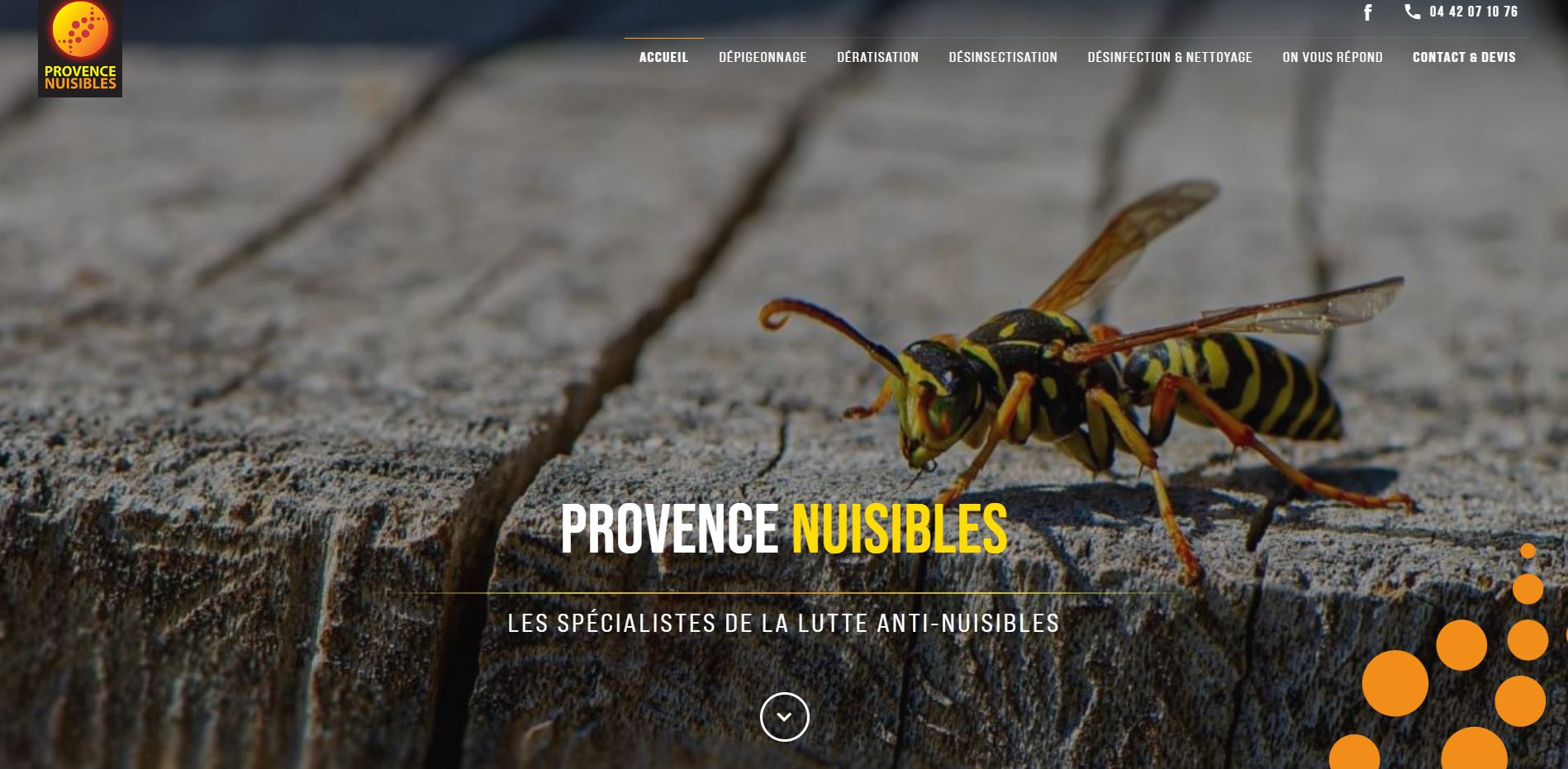 Provence Nuisibles est une entreprise qui propose des solutions efficaces et rapides pour lutter contre les nuisibles de tout type. Située à Velaux, la société intervient pour la dératisation, désinsectisation ou encore dépigeonnage dans les Bouches-du-Rhône.