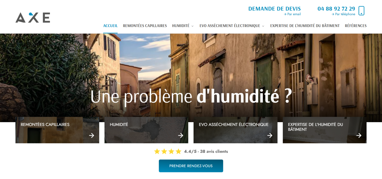 Axe Assèchement nous a fait confiance pour la construction de son site. Ces spécialistes sont à votre disposition pour le traitement de l'humidité dans votre maison sur Lyon, Marseille, Toulouse, Bordeaux... Vous pourrez leur faire confiance pour la réalisation d'une étude sur mesure pour votre intérieur, que vous soyez un professionnel ou un particulier.