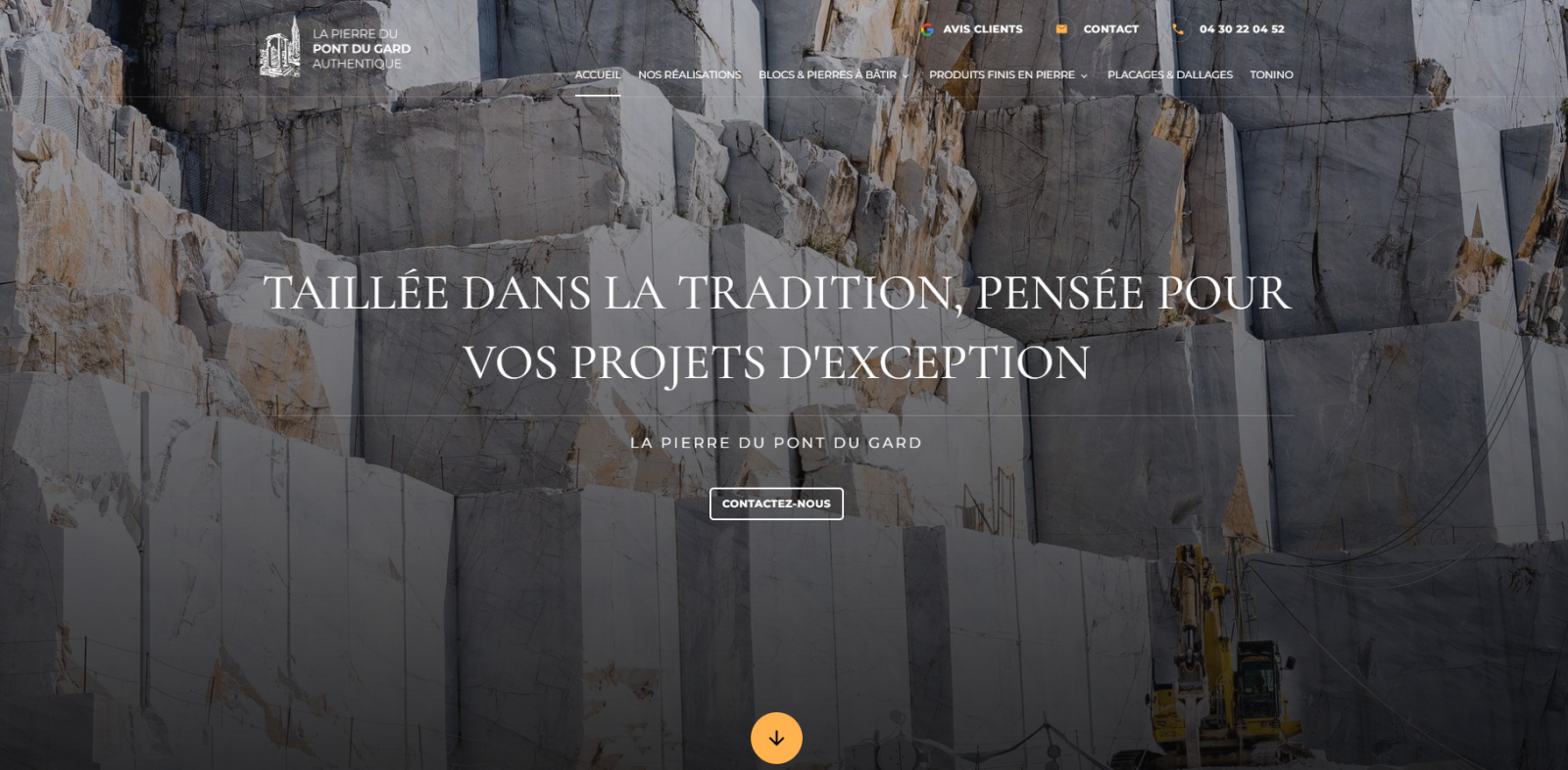 Située au cœur du Gard, La Pierre du Pont du Gard est spécialisée dans l’extraction de pierre naturelle calcaire jaune, résistante et locale. Exploitée dans une logique durable, leur carrière garantit encore plus de deux siècles d’exploitation. Que ce soit pour la taille, la rénovation, ou les aménagements paysagers, la pierre est livrée brute ou calibrée selon vos besoins.